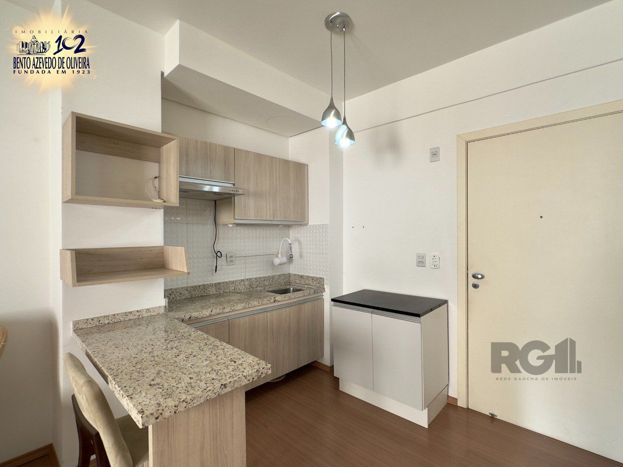 Apartamento loft semimobiliado, peça ampla com ambiente quarto/sala, cozinha americana, 1 banheiro e 1 vaga de garagem. Excelente opção para locação para estudantes, devido à localização do edifício.