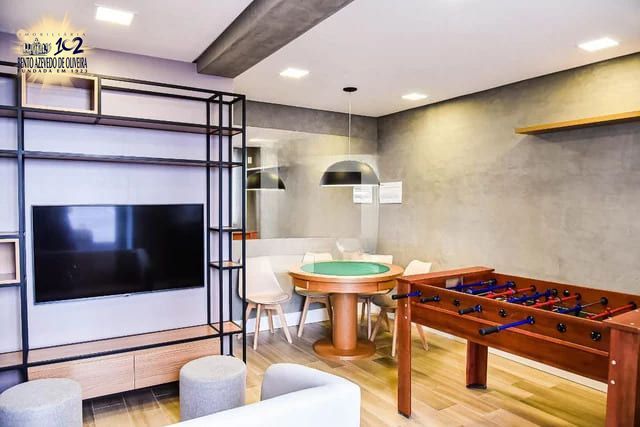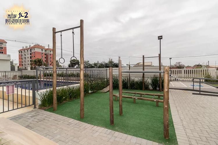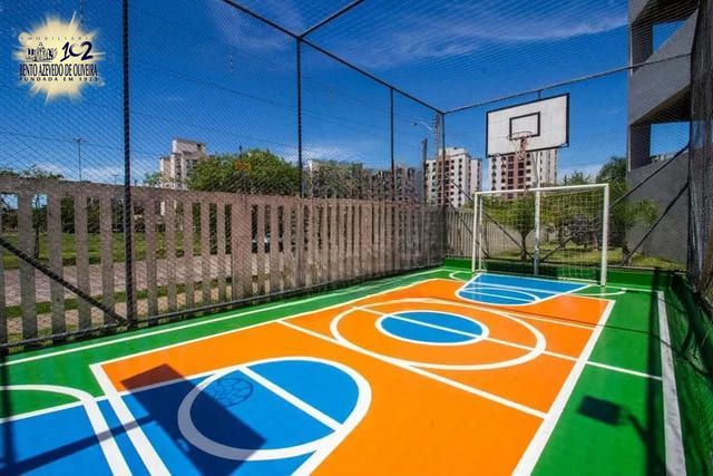 O condomínio oferece infraestrutura completa, com quiosques equipados com churrasqueira, dois salões de festas, brinquedoteca, sala de jogos, piscinas adulto e infantil, playground, bicicletário, quadra poliesportiva, gás central, áreas ajardinadas, portaria 24 horas, elevadores, zeladoria e loja de conveniência interna.