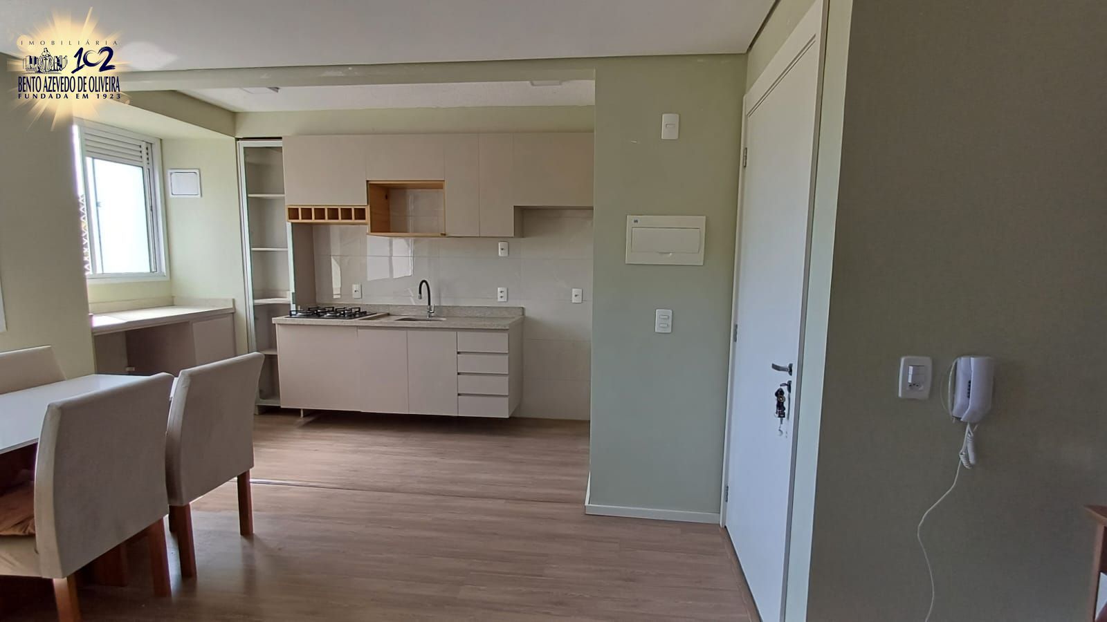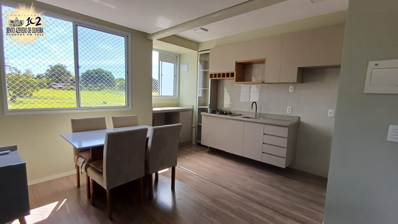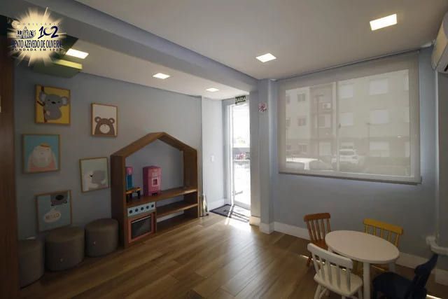 O imóvel conta com planta bem distribuída, composta por dormitório confortável, banheiro espaçoso com ventilação natural, cozinha americana equipada com churrasqueira e living integrado para 2 ambientes.