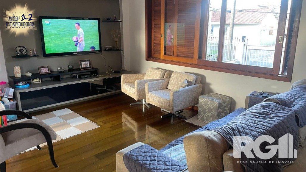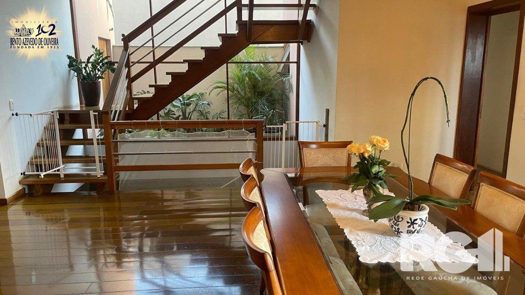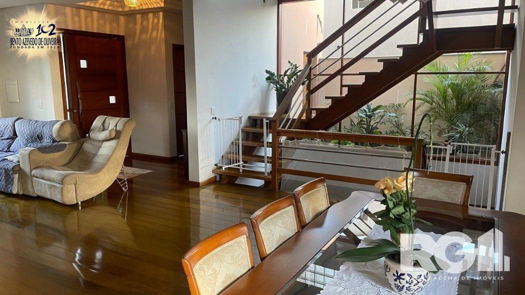 Belíssima casa com 4 dormitórios, 1 suíte, 2 banheiros, lavabo, espaço para escritório e amplo living para 2 ambientes com piso e escada em madeira grápia , lareira e cozinha americana. Ao fundo espaço gourmet com churrasqueira integrada. Garagem no subsolo para aproximadamente 8 carros , banheiro auxiliar , muito bom pátio e depósito..
