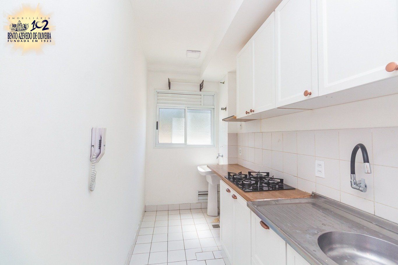 A área de serviço é separada e dispõe de tanque, trazendo mais organização ao ambiente.