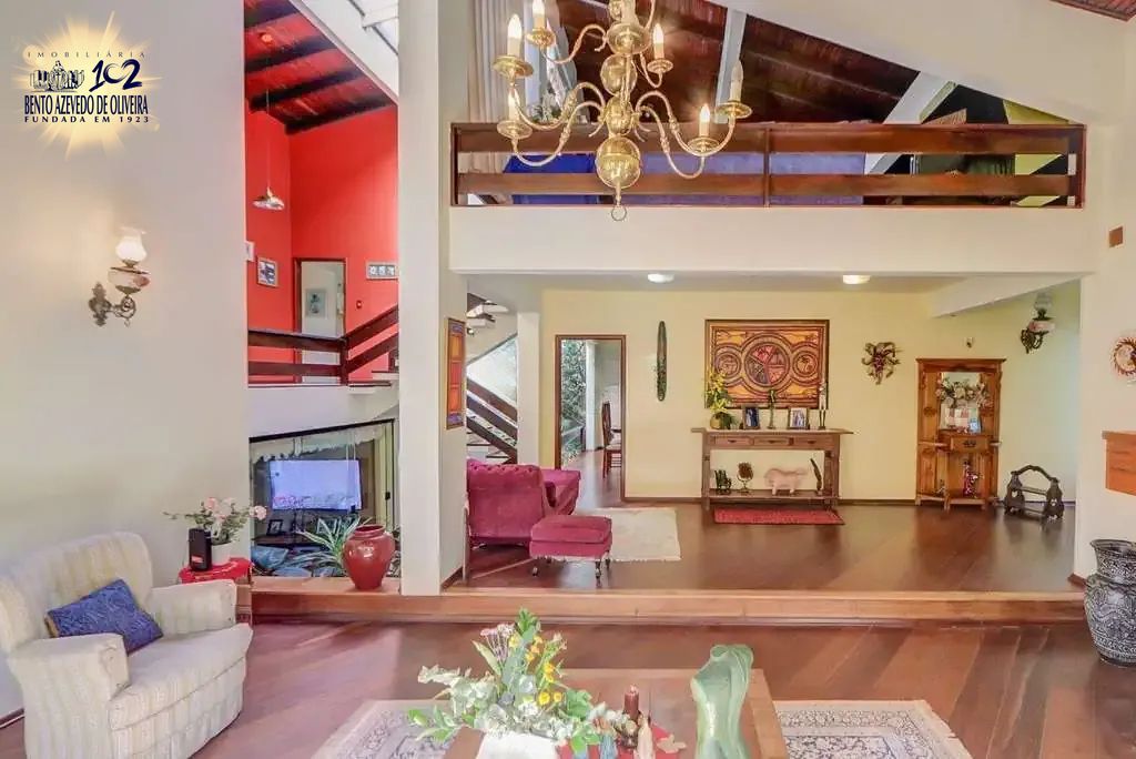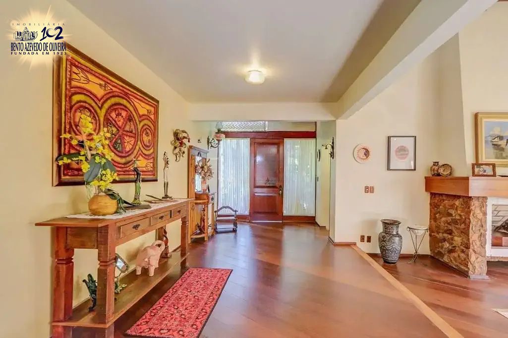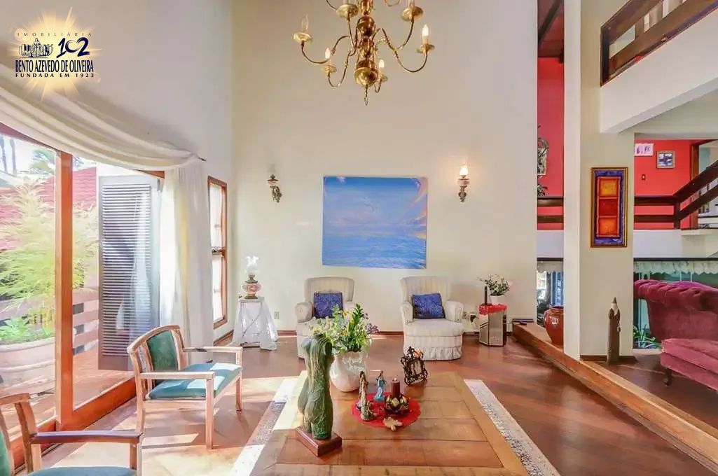 Casa com 481m² de área construída, 3 suítes com sacada, sendo 1 suíte master com closet e banheira de hidromassagem. Hall de entrada, sala de jantar ao lado de um belíssimo jardim de inverno. São duas salas de estar, sendo uma com bar, lareira e lavabo, e outra com lareira, sacada e amplas portas de vidro com vista livre.
