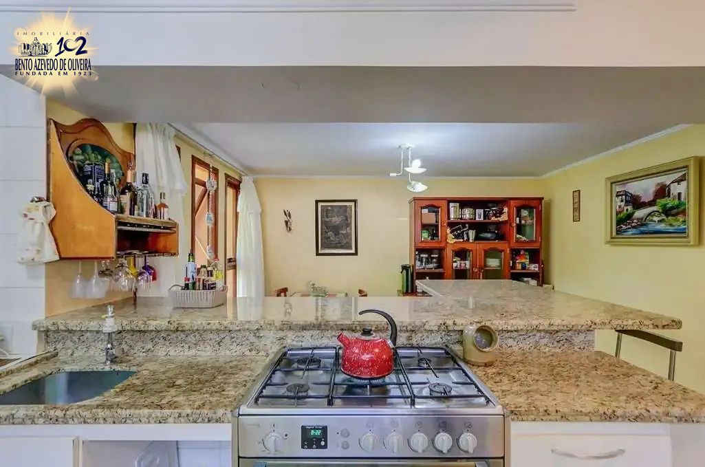 Cozinha ampla com balcão em mármore e copa. Espaço multiuso, área de serviço com dependência completa. Belíssimo pátio com piscina, área de churrasqueira e pomar. Garagem para 2 carros.