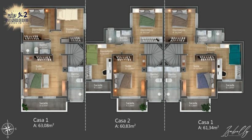 Casa com 126 metros privativos de 3 dormitórios sendo 1 suíte. No andar térreo, sala com dois ambientes amplos iluminados, cozinha americana, área de serviço com ventilação natural e lavado. Na parte superior, três dormitórios sendo 2 de frente com sacada, um deles com suíte e banheiro social. Duas vagas cobertas. Aceita pet e financiamento.