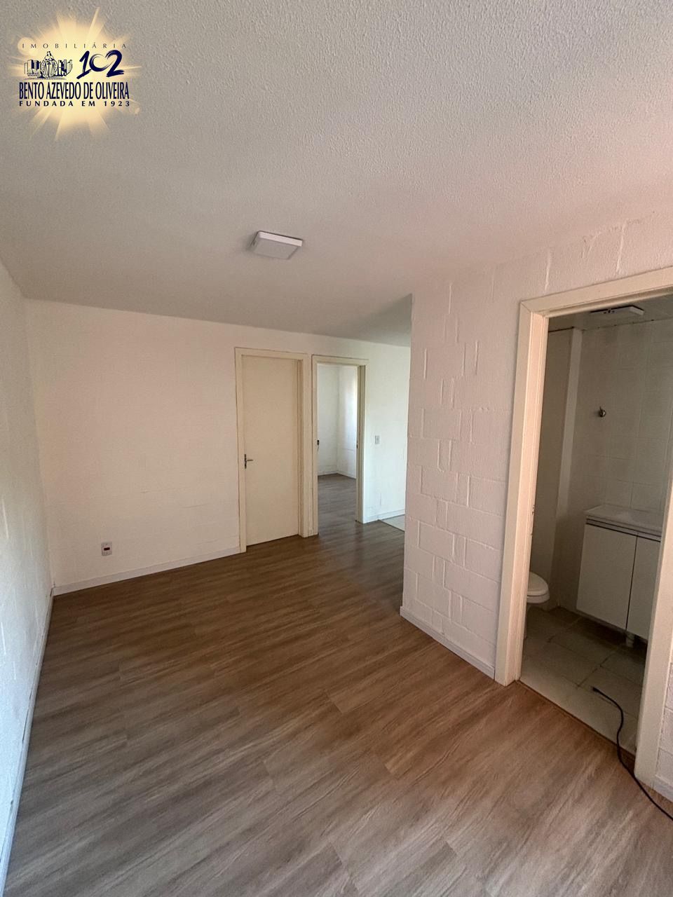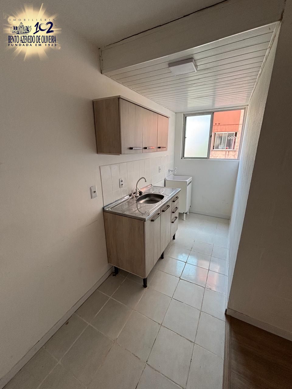 São 40m² distribuídos em 02 dormitórios, sendo 01 com armário, living 02 ambientes, cozinha com pia e armários, área de serviço com tanque e banheiro social.