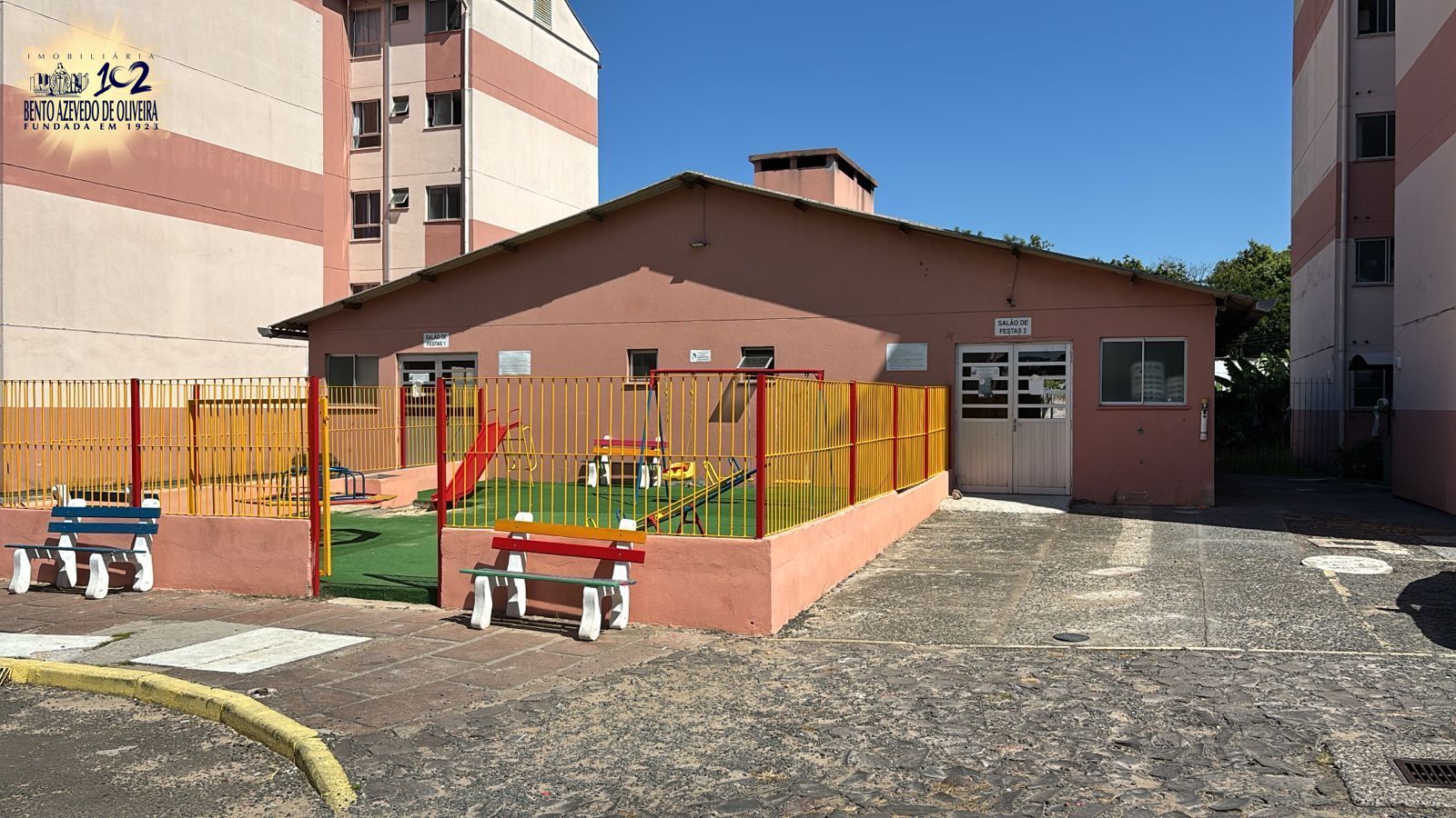 Fica no segundo andar. Condomínio fechado oferece vagas rotativas, portaria 24h, quadra de esportes, playground, bicicletário e salão de festas.