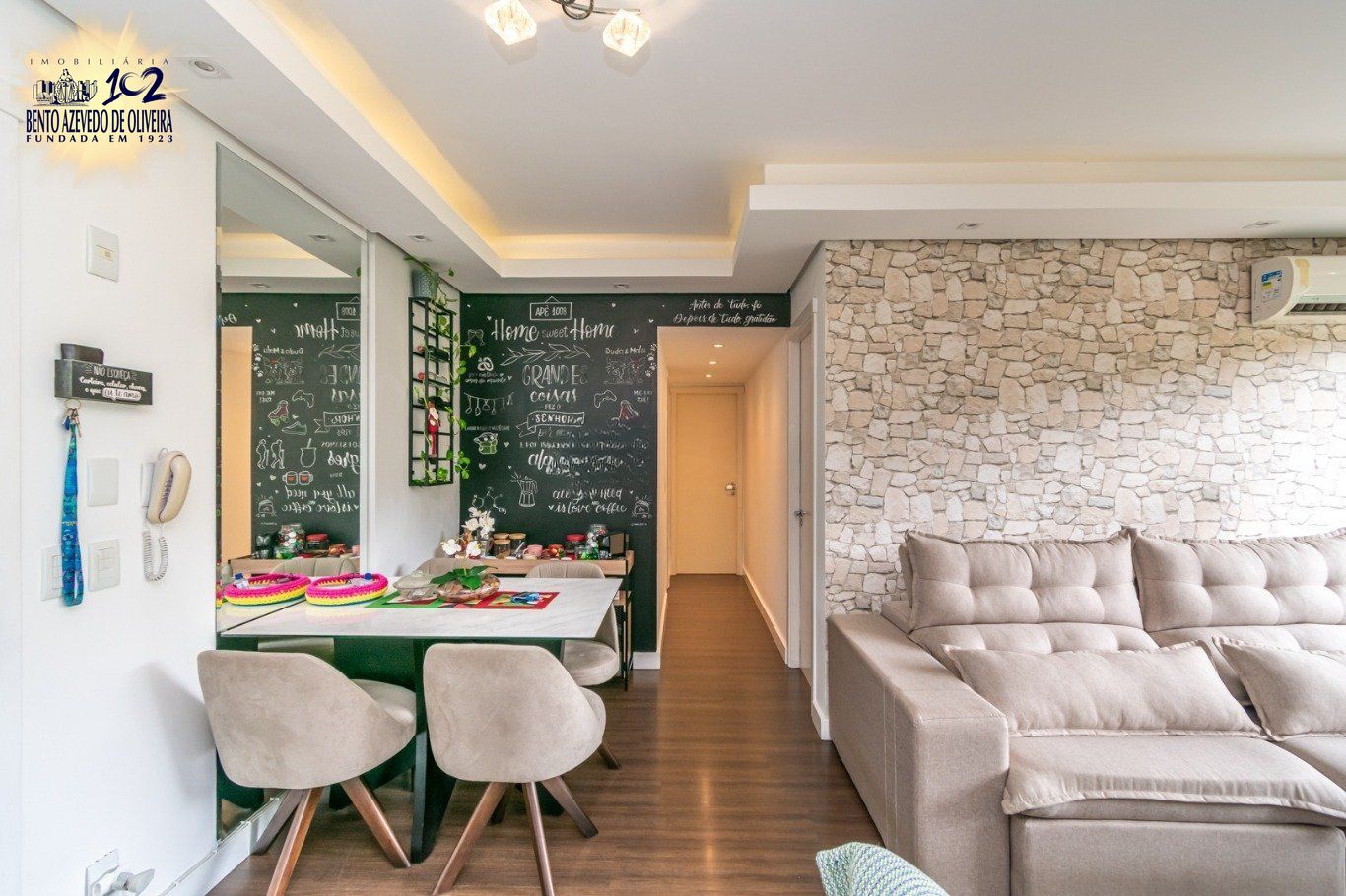 Apartamento finamente decorado, onde cada detalhe foi pensado no seu bem estar e conforto, com 3 dormitórios sendo um transformado em escritório com closet, mas facilmente reversível, 1 suíte, living 2 ambientes, banheiro social, cozinha e área de serviço.