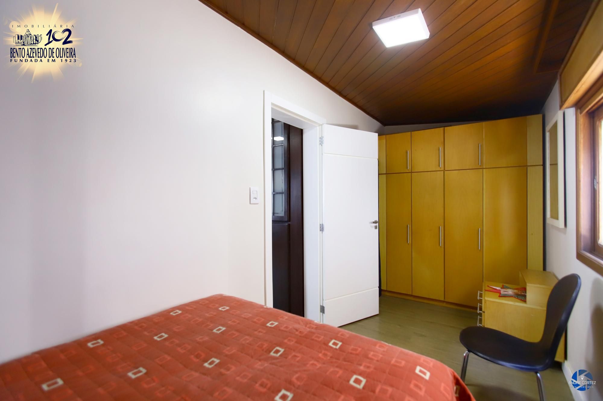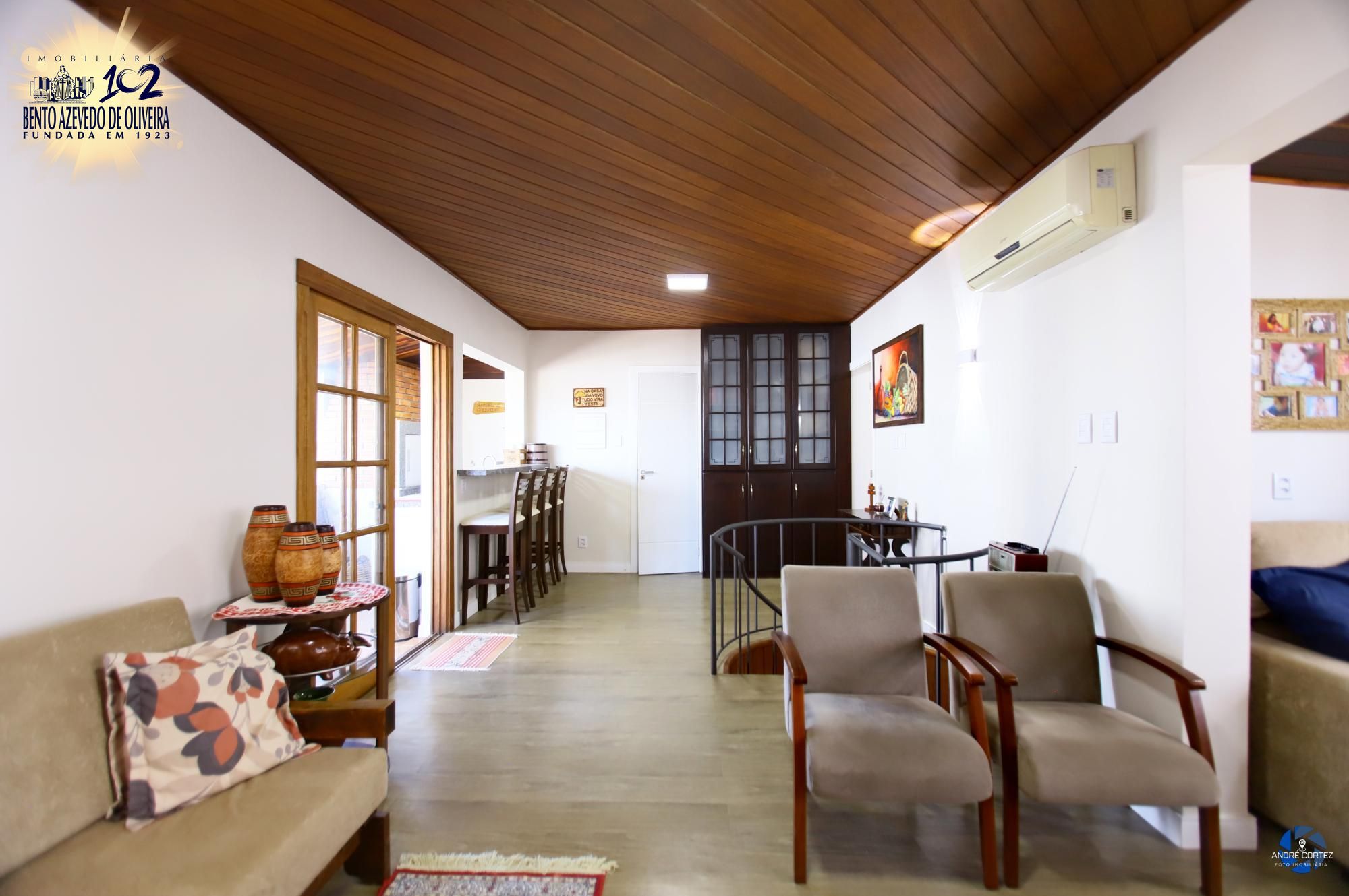 No andar superior: Ampla sala de cinema com lareira, quarto, banheiro, área de serviço, área gourmet com churrasqueira e terraço coberto.