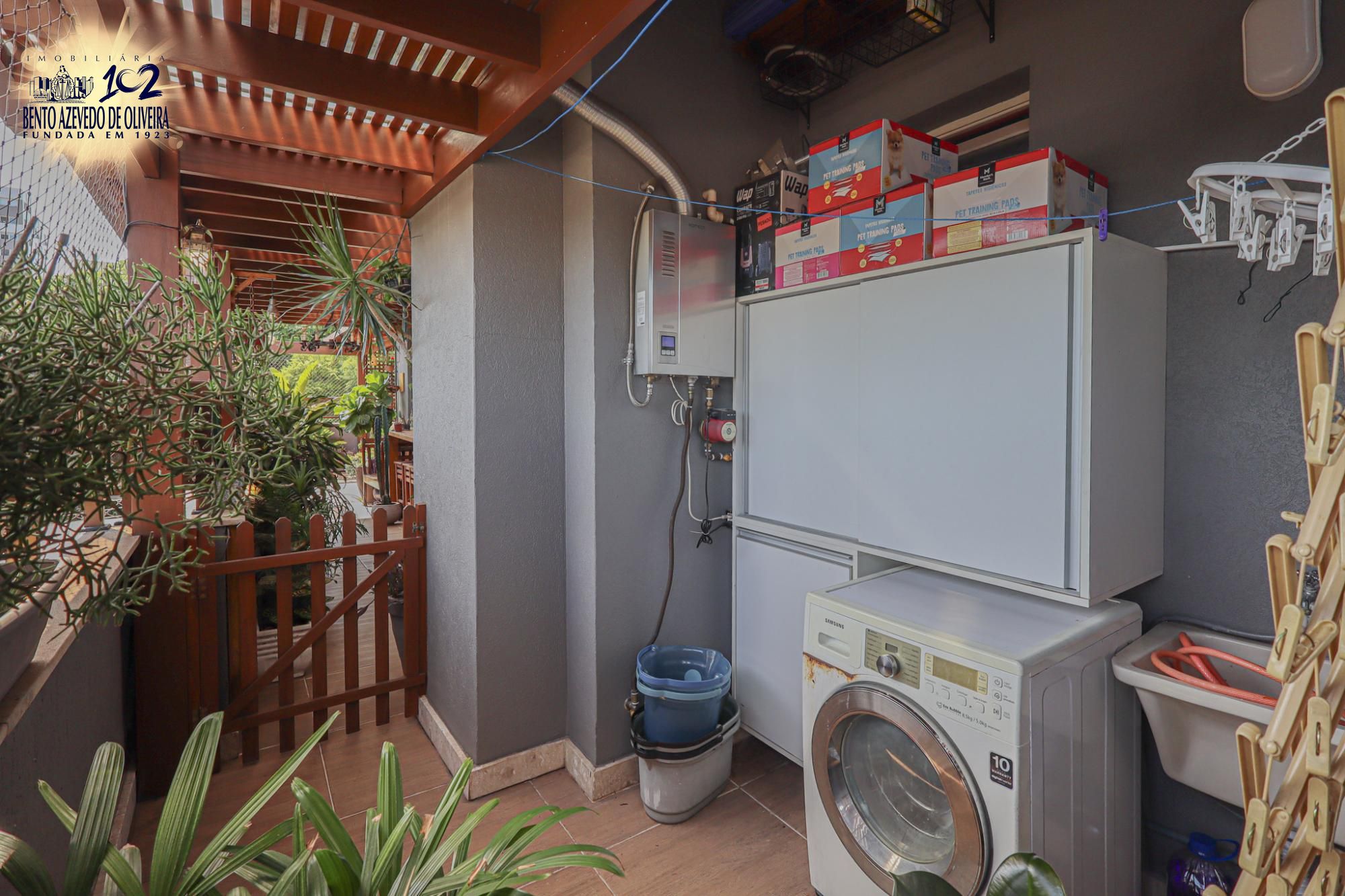 Lavanderia ampla e ventilada, independente da área social.