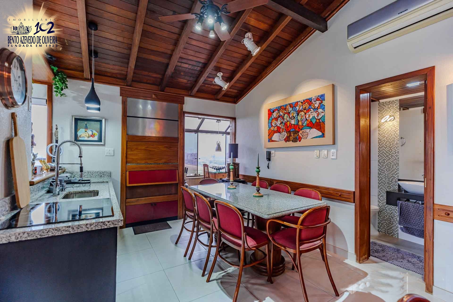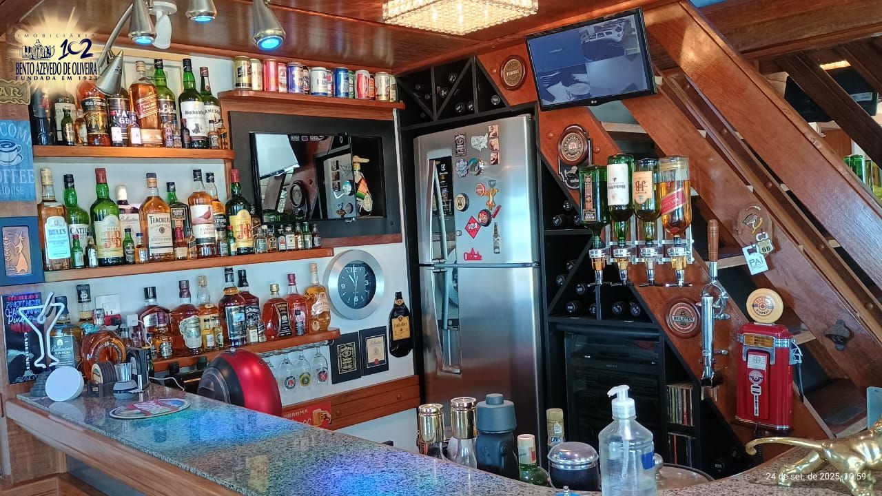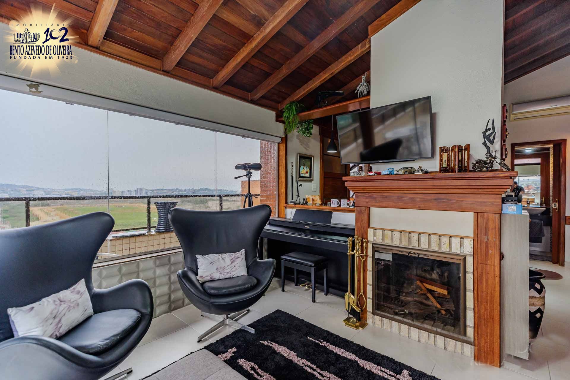 No segundo pavimento bar completo, churrasqueira, cozinha completa com fogão por indução, micro-ondas, sala de jantar, lareira a lenha, TV giratória, piano, sonorização, poltronas, tela para reprodução do retroprojetor, telescópio e banheiro social, O terraço com um minijardim de inverno, deck com piscina, muito sol e aquela vista livre permanente para dentro do bairro assim como o Lago Guaíba e demais locais acima descritos.