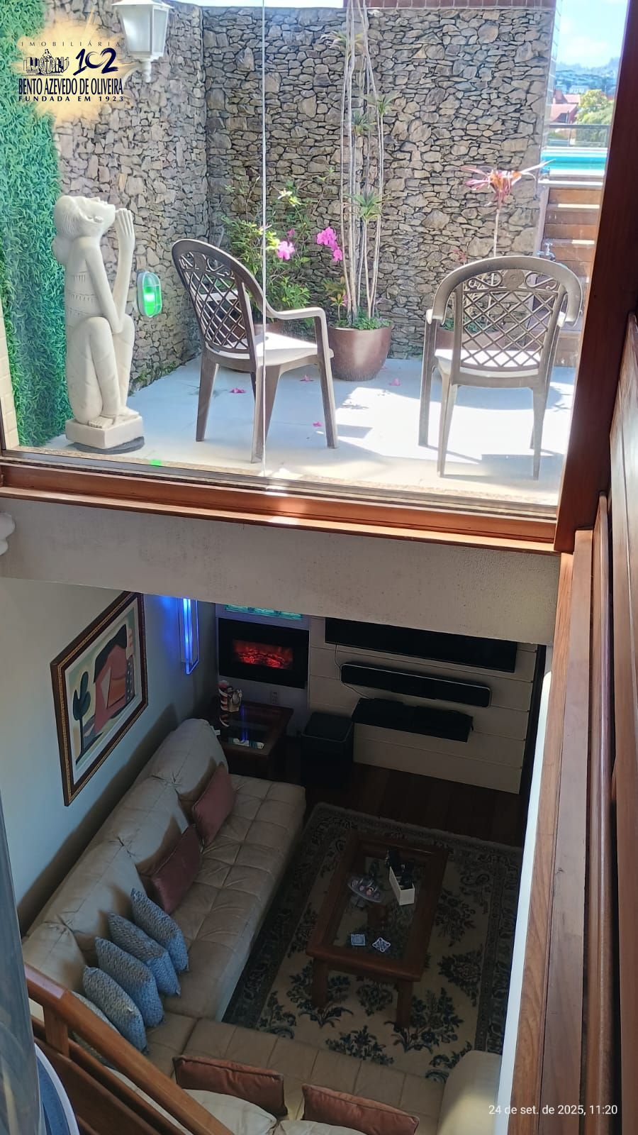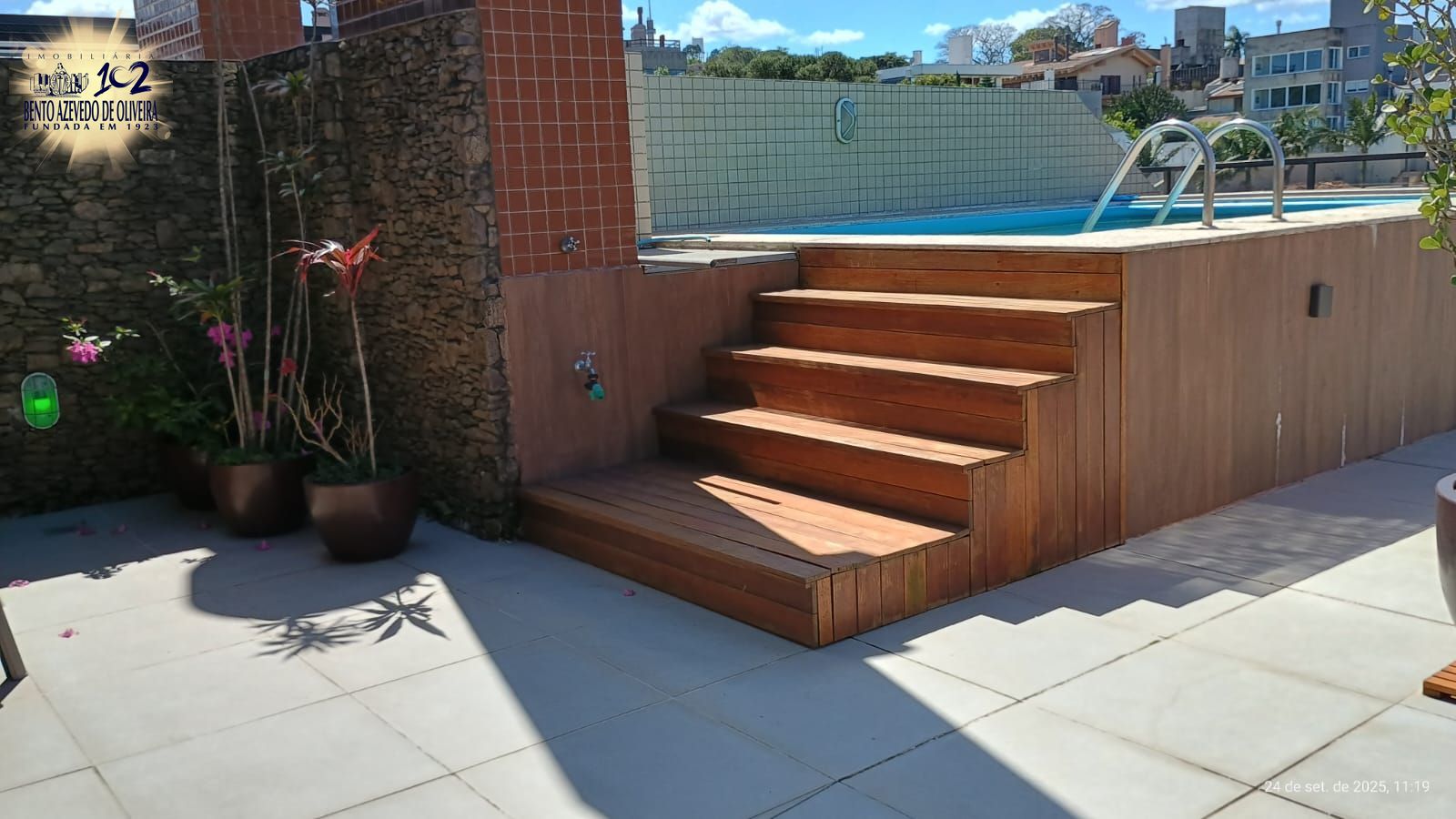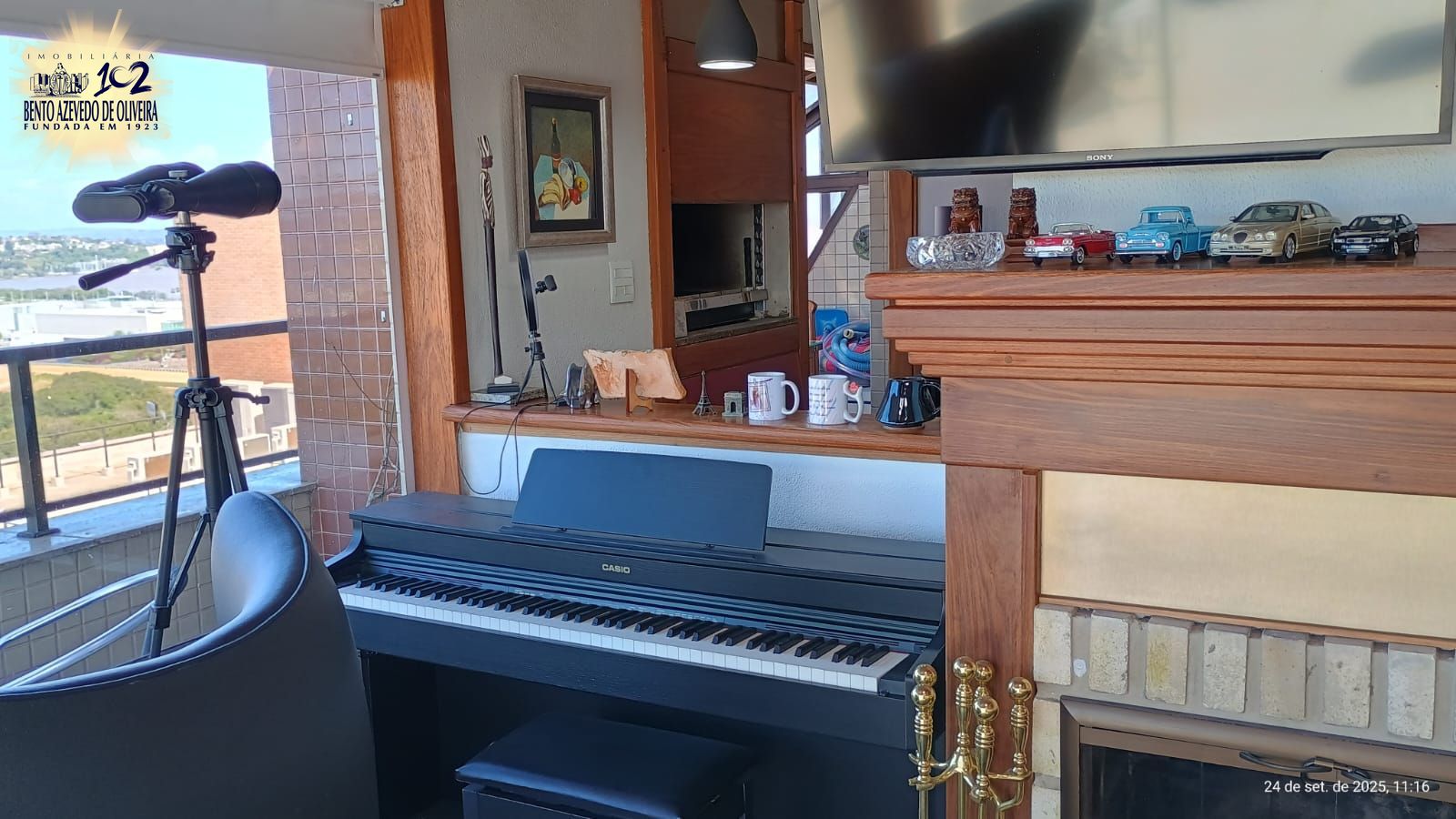 No segundo pavimento bar completo, churrasqueira, cozinha completa com fogão por indução, micro-ondas, sala de jantar, lareira a lenha, TV giratória, piano, sonorização, poltronas, tela para reprodução do retroprojetor, telescópio e banheiro social, O terraço com um minijardim de inverno, deck com piscina, muito sol e aquela vista livre permanente para dentro do bairro assim como o Lago Guaíba e demais locais acima descritos.