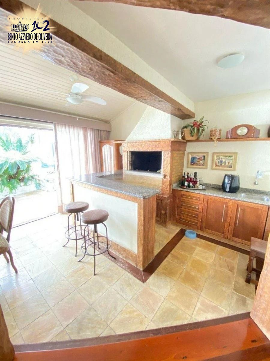 No primeiro pavimento, você é recebido por um hall de entrada que leva a uma ampla área social com dois ambientes e lareira, perfeita para momentos aconchegantes. A cozinha é espaçosa e funcional, com fácil acesso à lavanderia e banheiro auxiliar. A sala de jantar integrada com churrasqueira, balcão e pia cria o espaço ideal para reunir família e amigos.