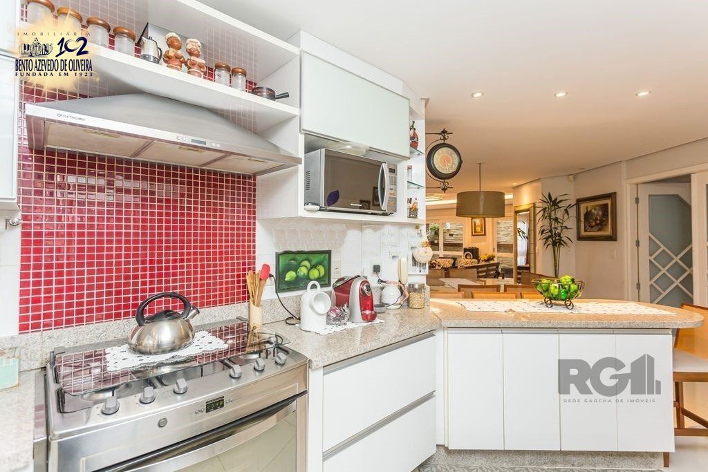 ótima Casa 350 m² privativos, terreno 21 x 28. Decorada e mobiliada, 4 suítes sendo 1 master, living com 3 ambientes. sala de estar com lareira, de jantar, jardim de inverno e lavabo, cozinha integrada, dependência de empregada e lavanderia separada, banheiro auxiliar. Nos fundos, a parte da garagem coberta foi transformado num salão de festas/espaço gourmet amplo com churrasqueira, fogão a lenha coberto e um pátio descoberto com piscina. Casa conta com um sótão de cerca de 100 m² privativos. Garagem coberta para 2 carros e espaço para outros 4 descobertos.