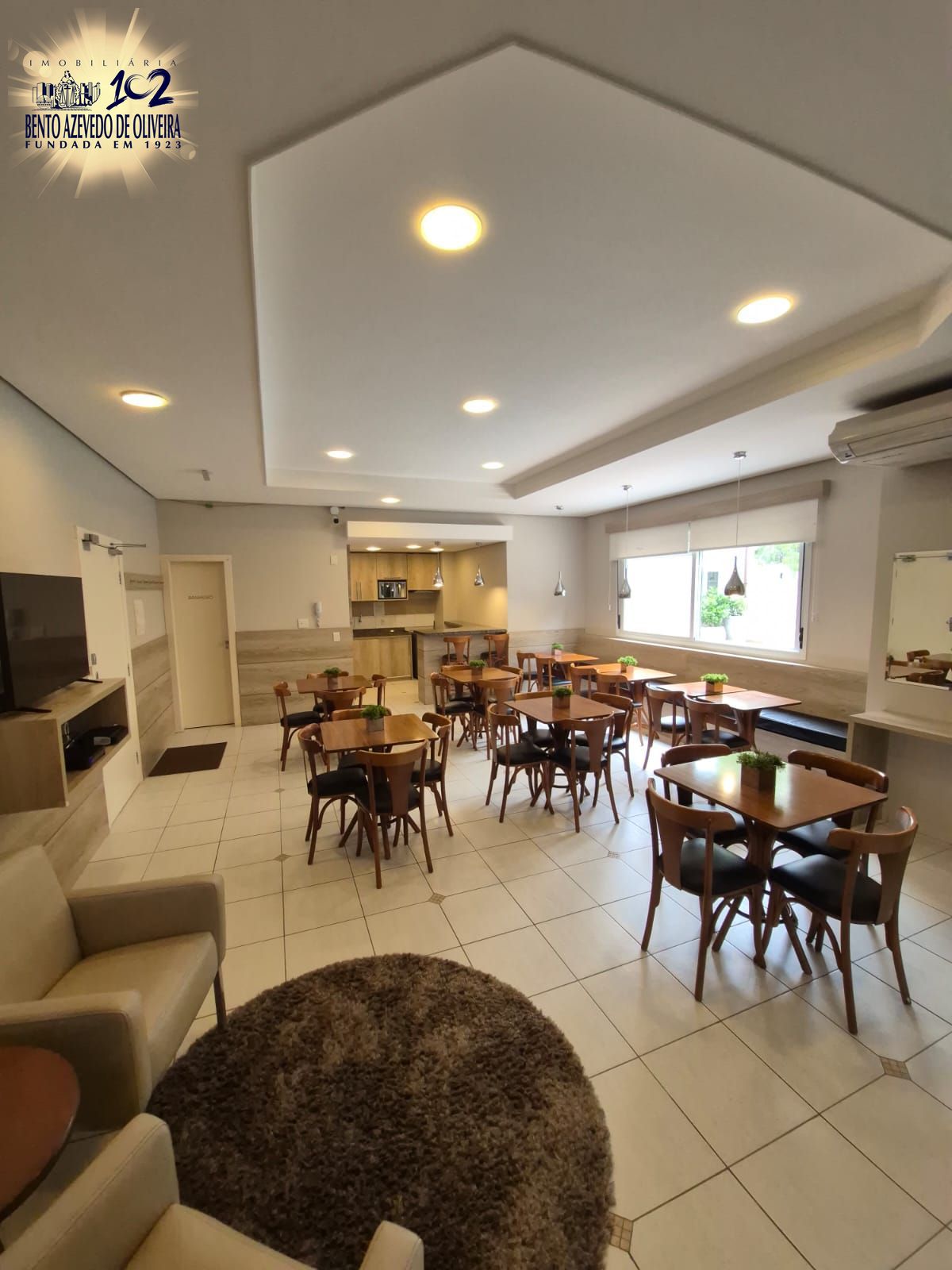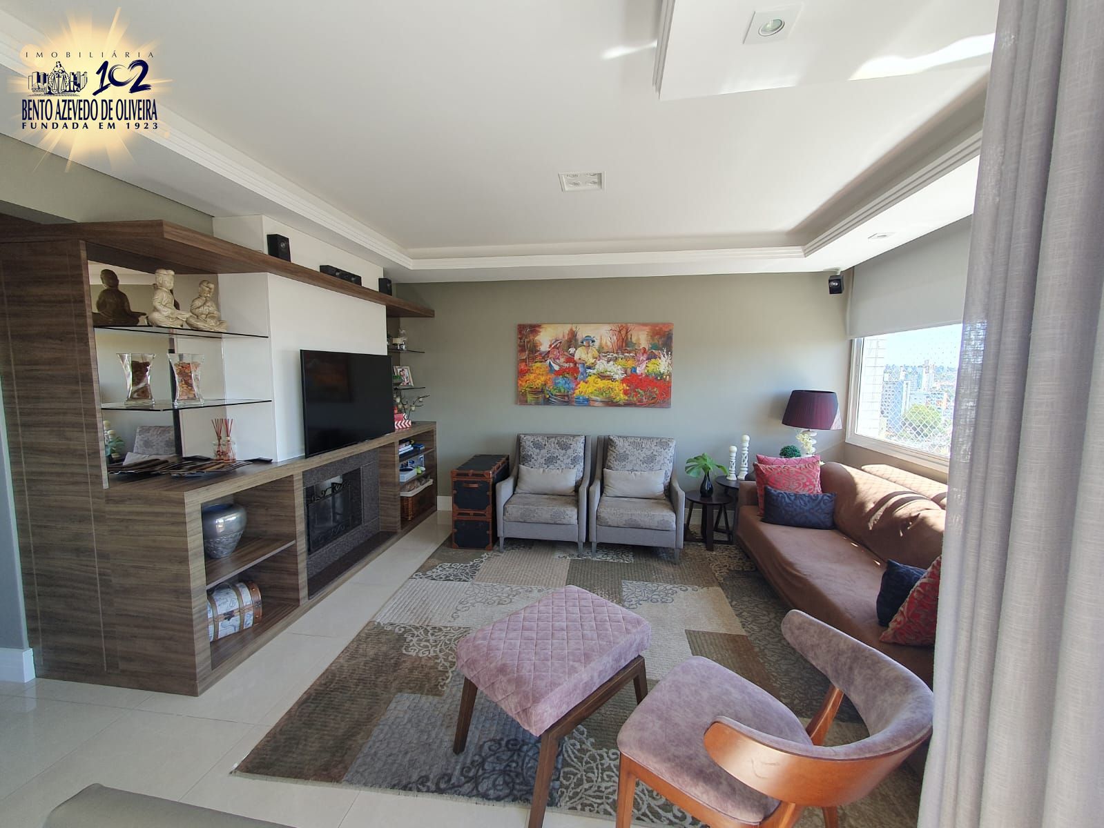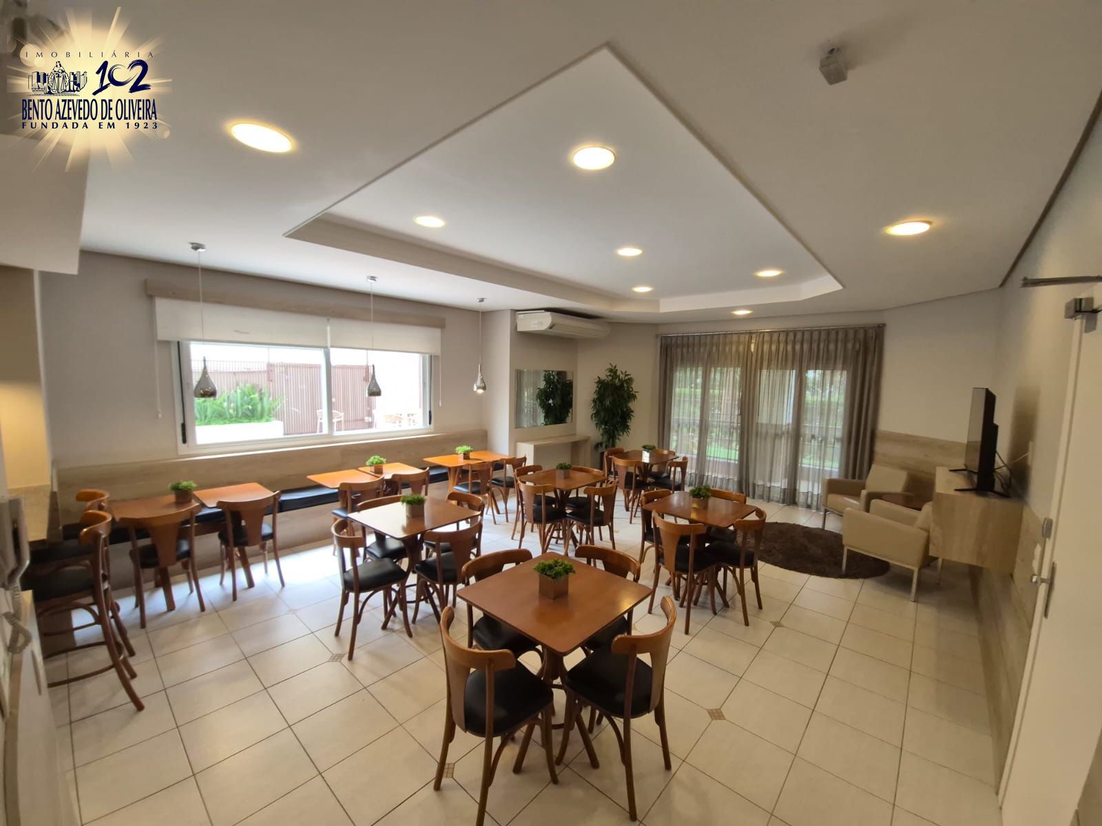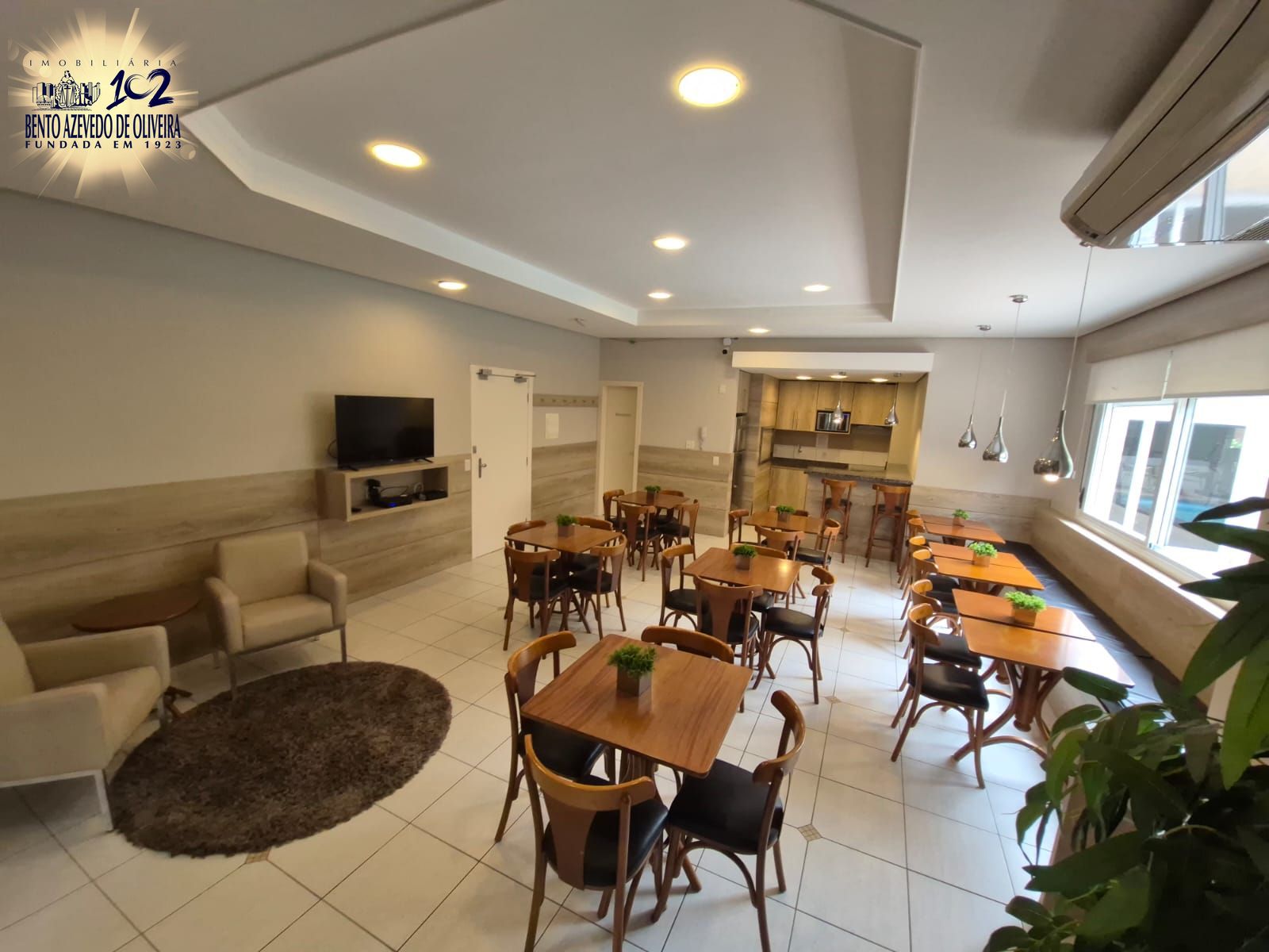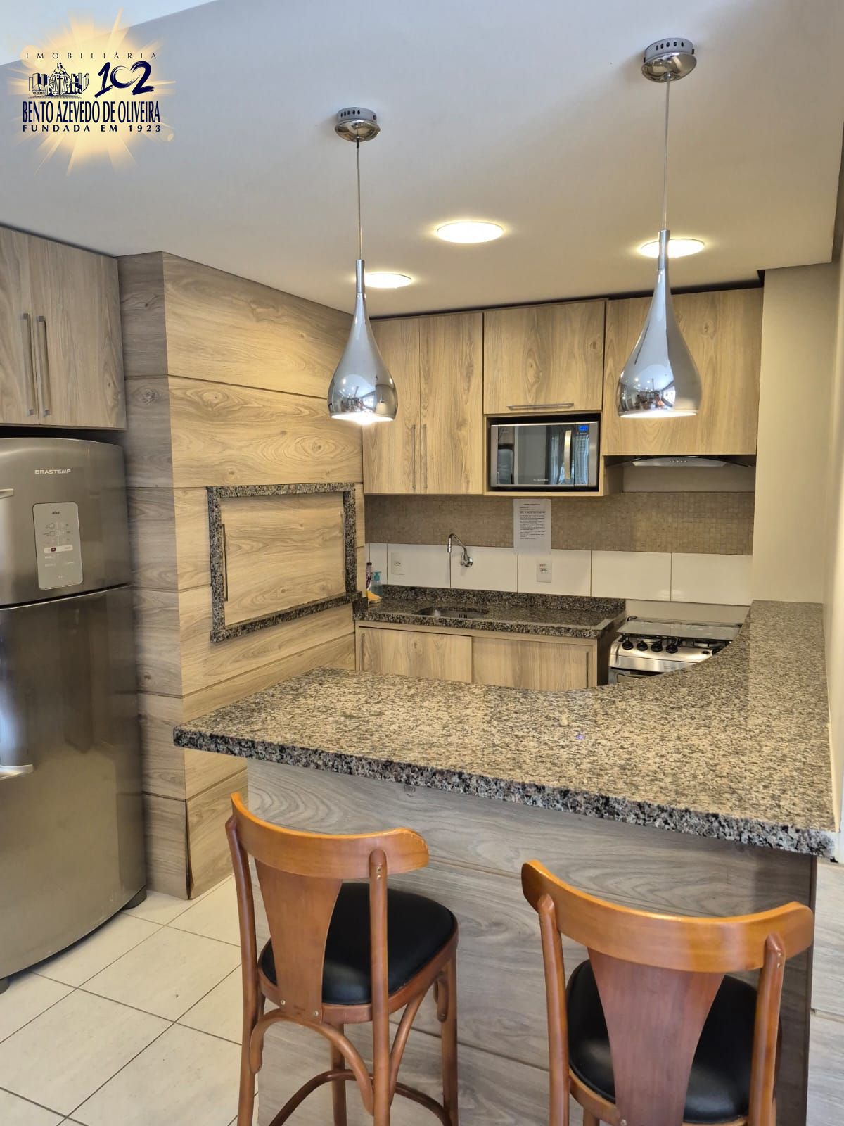 O living possui 2 ambientes, lareira a lenha, lavabo e uma charmosa churrasqueira, ideal para receber amigos e familiares. O apartamento está completamente mobiliado e dispõe de ar-condicionado em todas as peças.