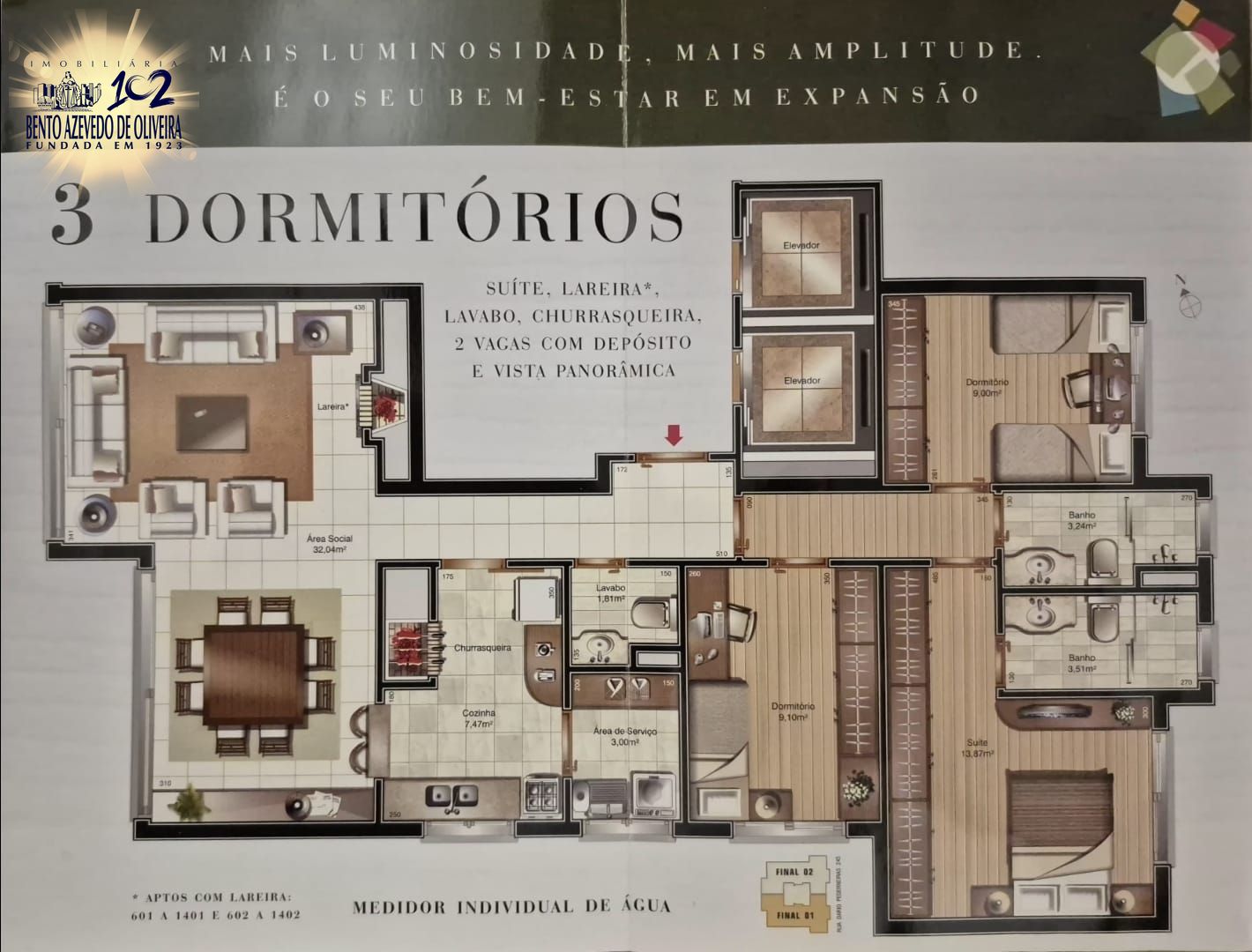 Possui ainda depósito individual de aproximadamente 7 m² e 2 vagas de garagem escrituradas, lado a lado.
