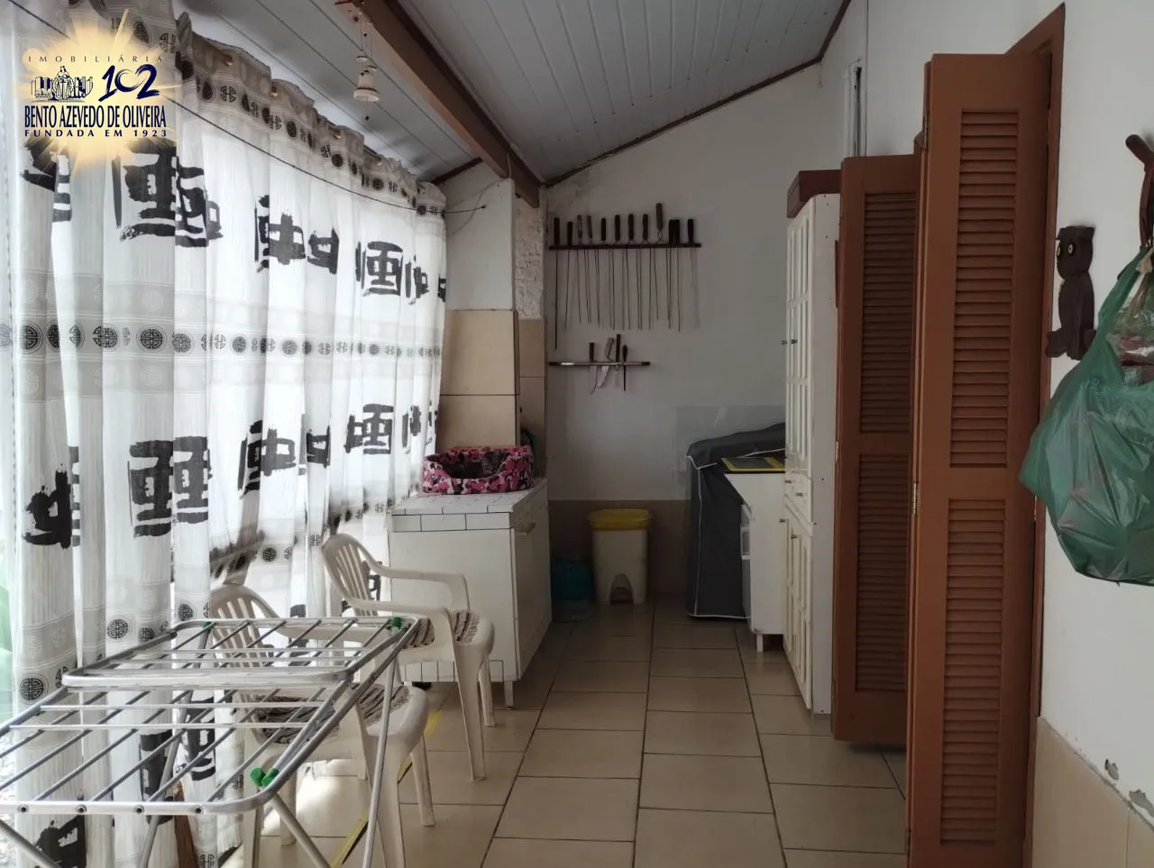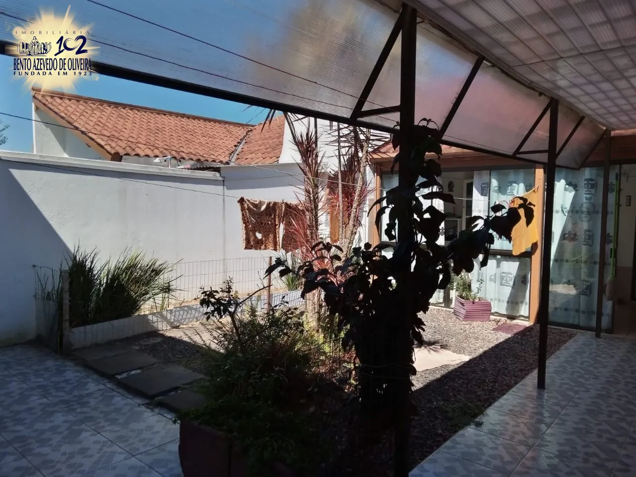Área de lavanderia podendo ser utilizado como espaço gourmet, toda fechada de vidro, outro pergolado nos fundos ligando a casa com a suíte principal. Forro em PVC industrial, fenda escondida, parece um gesso, muito bonito e prático, piso laminado nos quartos e sala mas demais peças piso cerâmico. Telhado forrado com manta asfáltica pintada da cor da telha para proteção da casa contra possíveis ventos fortes .