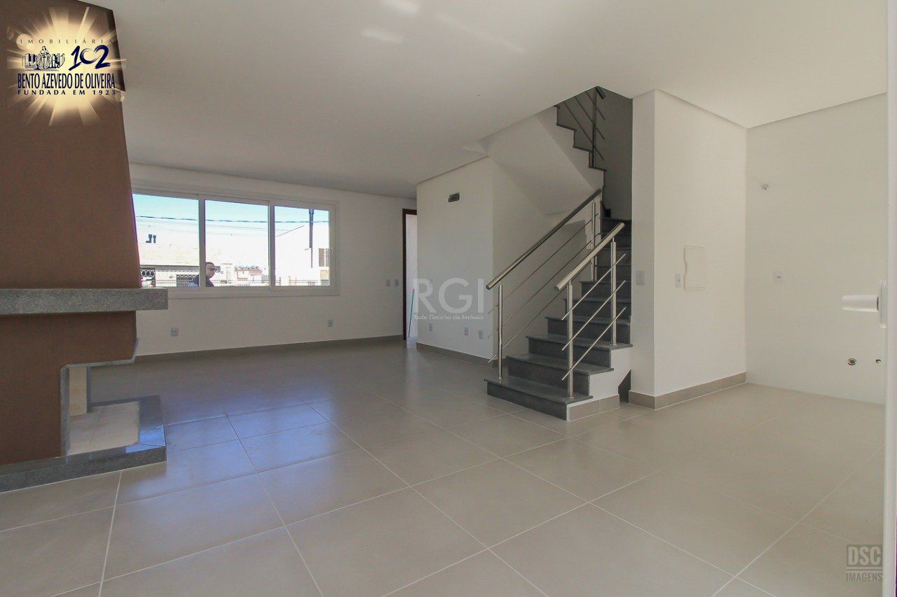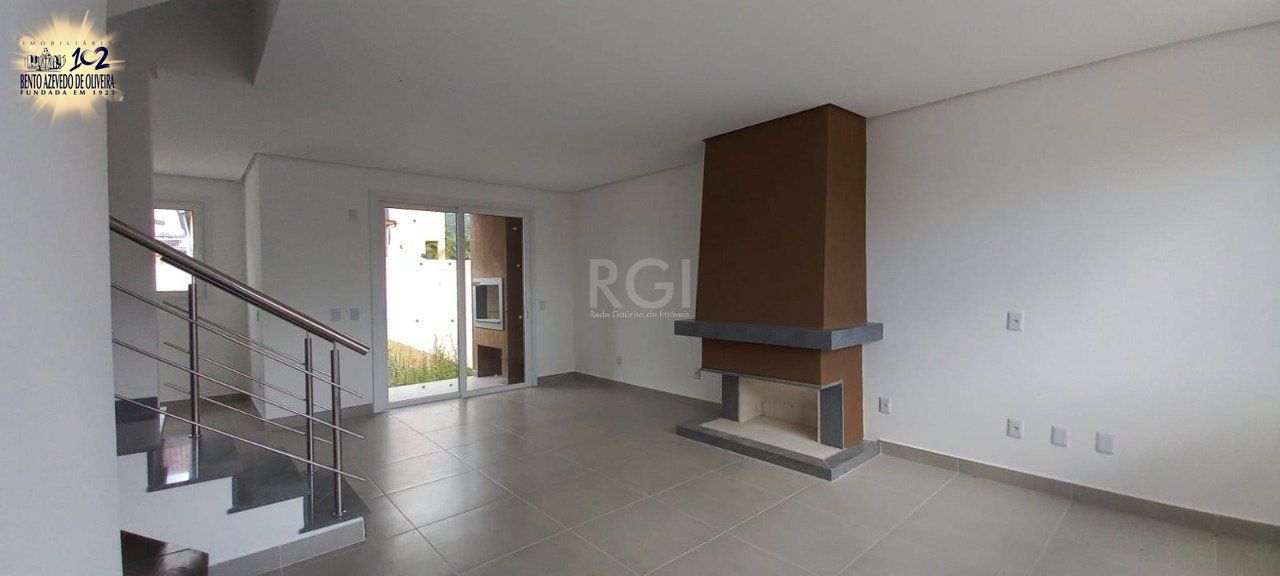 Sobrado com três dormitórios sendo uma suíte, amplo living conceito aberto, banheiro social iluminação natural, lavabo, lareira, aberturas em pvc, venezianas, enorme pátio nos fundos com 66m², churrasqueira, laje impermeabilizada área aproveitável com excelente metragem, duas vagas veículos, bairro com infra completa, na avenida, Jorge Babot Miranda, quadras poliesportivas, praças, monitoramento 24 h, banco CEF, casa lotérica, atacado Desco e Super Zaffari, p róximo a tudo .