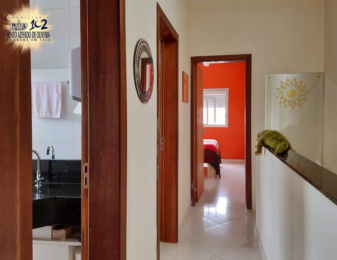 Com 80 metros quadrados de área construída, o andar superior tem três dormitórios, sendo uma suíte, mais um banheiro social e corredor. No andar térreo estão sala e cozinha integradas, dispensa / lavanderia e lavabo. Todos os banheiros têm os balcões das pias em granito e as paredes espelhadas, e, com exceção do lavabo, box em vidro temperado.
