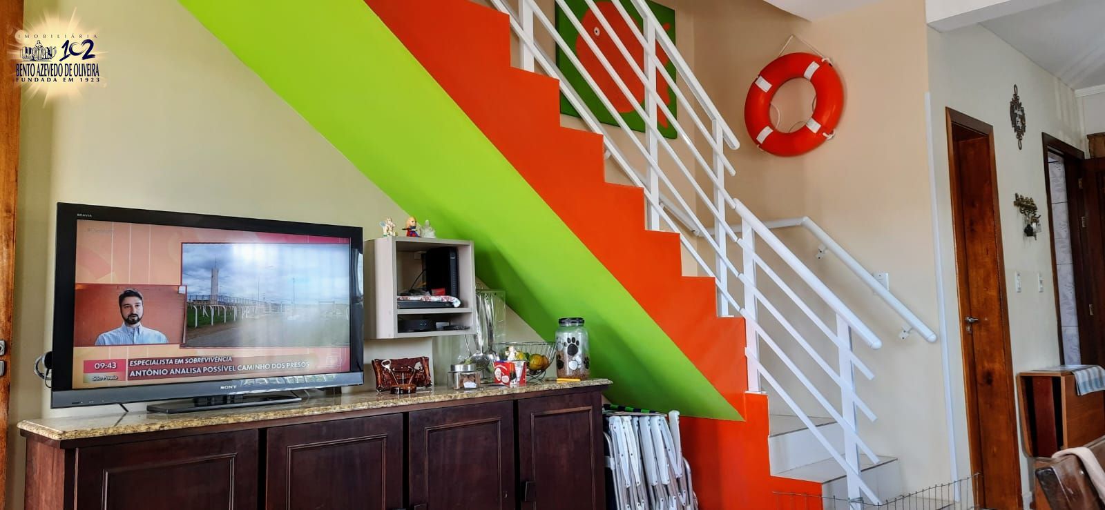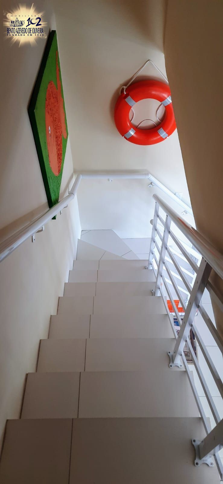 O revestimento do piso é em porcelanato e a escadaria que dá acesso ao segundo piso conta com guarda corpo em alumínio.