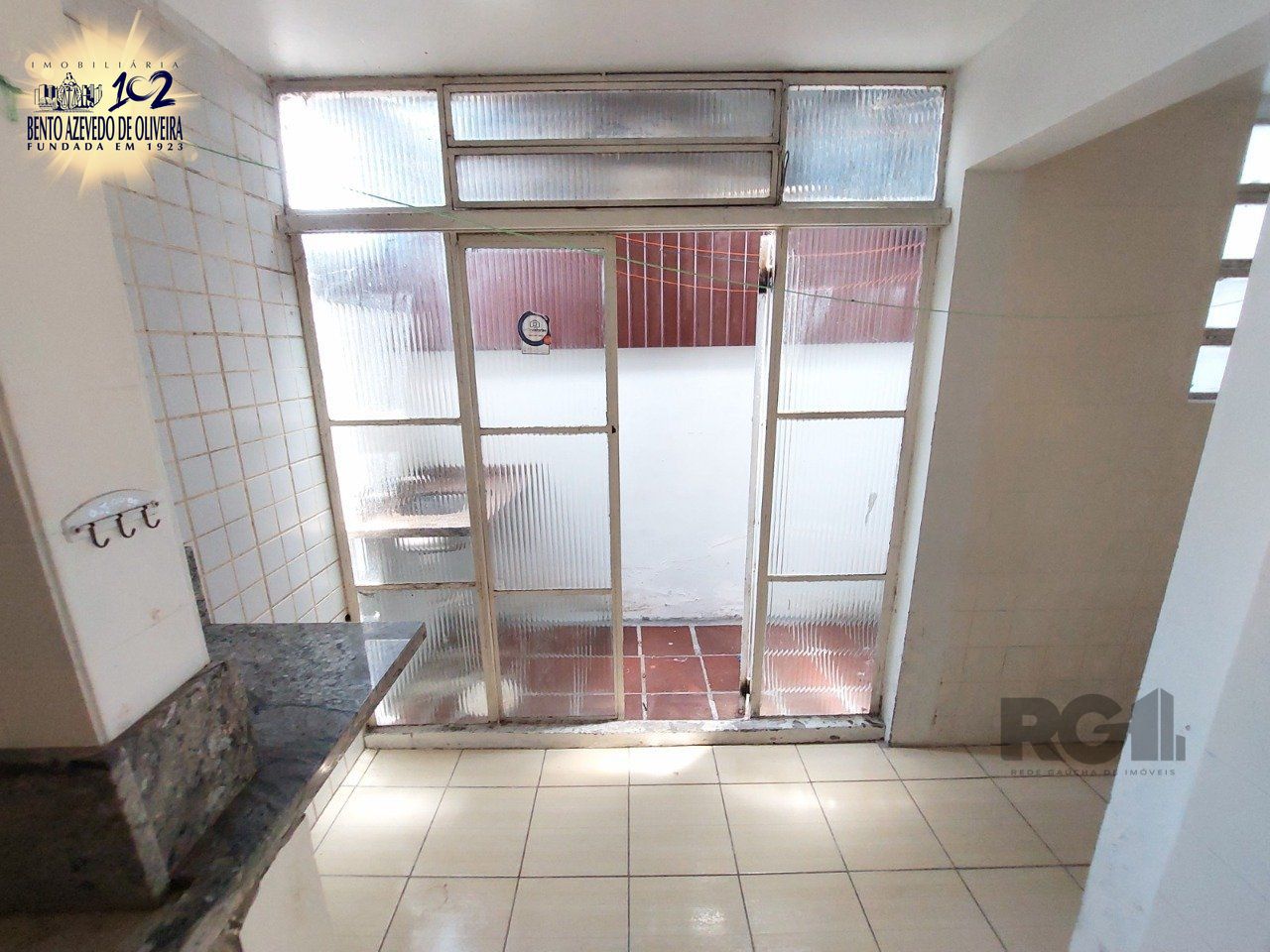 Ampla cozinha e área de serviço integrada, possui espera para wc auxiliar, banheiro social, e ainda um pequeno pátio com bom espaço para estender roupas, armários, etc.