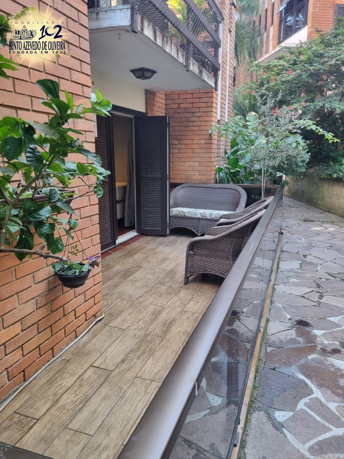 Apartamento térreo semi mobiliado de 3 dormitórios, churrasqueira, lareira, duas vagas no bairro Cristal.