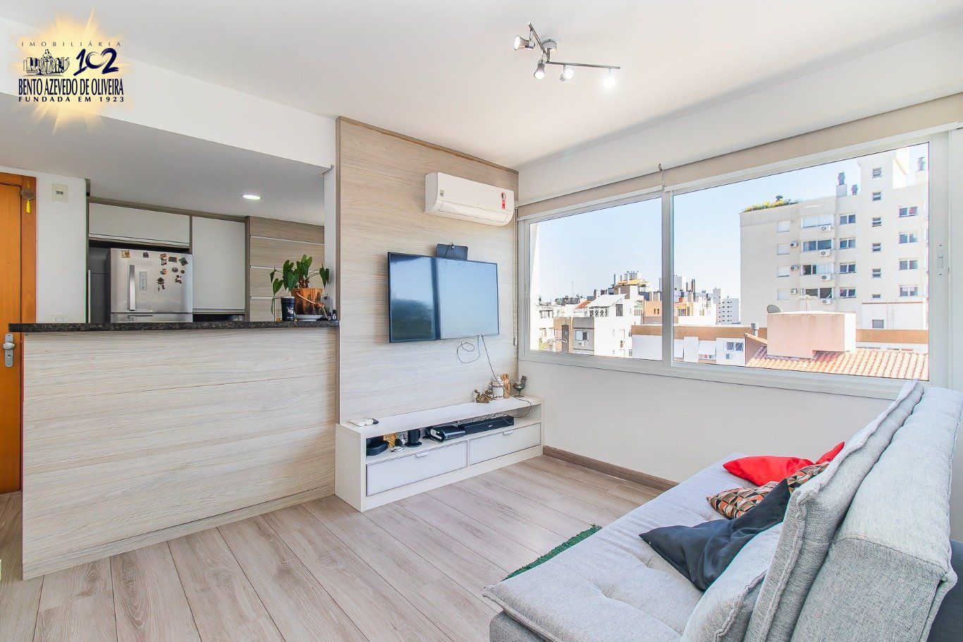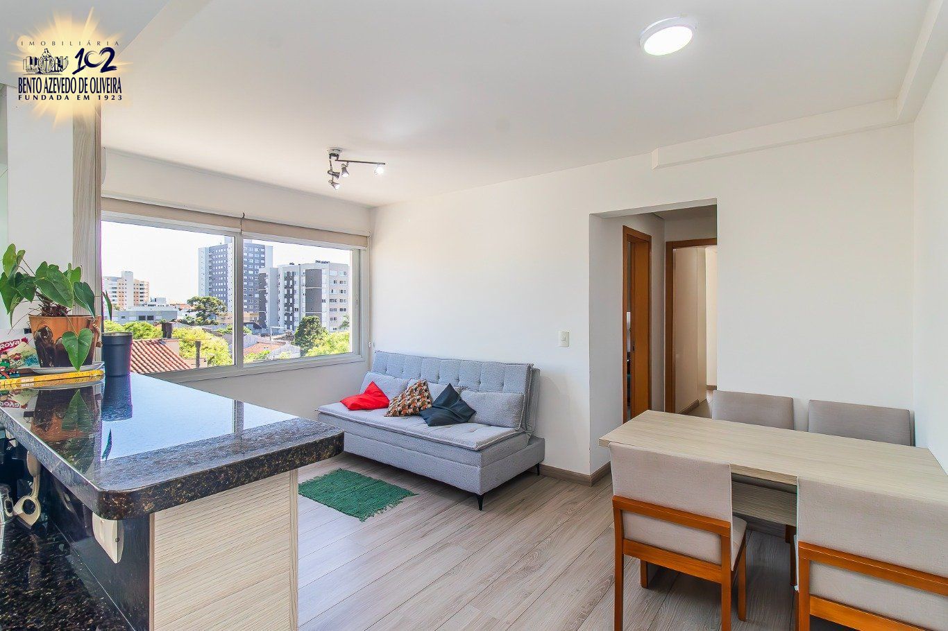 Amplo apartamento com excelente posição solar, andar alto e ótima ventilação natural. Possui 2 dormitórios confortáveis e bem distribuídos, sala com living espaçoso, janela grande e vista aberta para a rua. Terraço, hall de entrada com jardim e banco, perfeito para momentos de descanso.