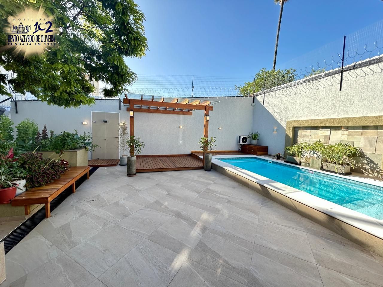 O terreno ainda oferece um salão de festas com churrasqueira, piscina, jardim de inverno, orta e garagem coberta para 2 carros, com espaço adicional para mais 4 veículos. Tudo isso em uma casa totalmente reformada, com elétrica e hidráulica novas, cerca elétrica e sistema de segurança com câmeras.