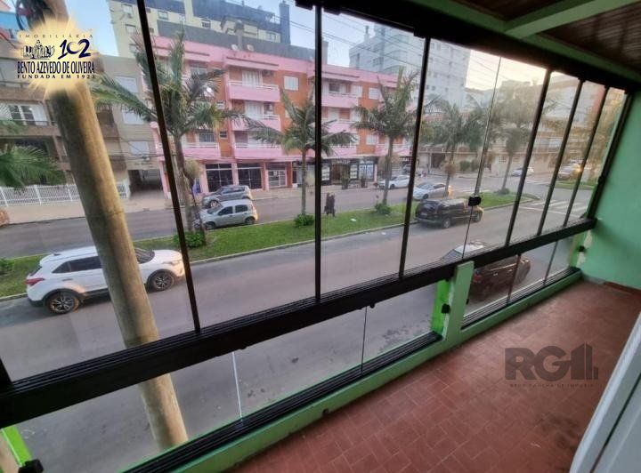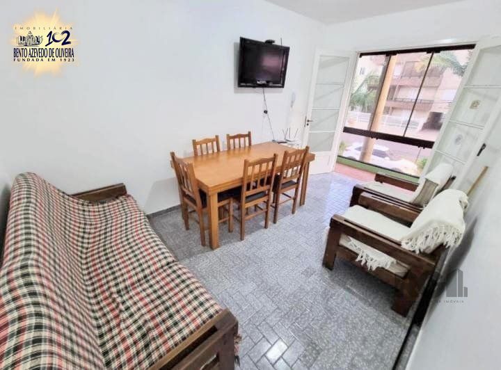 Vende-se apartamento de 2 dormitórios, de frente, ampla sacada com vista para o mar, a uma quadra da praia e com 1 vaga de garagem, copa cozinha, dependência completa, 1 banheiro social. Piso frio e aberturas em madeira. Muito arejado e com ótima iluminação solar. Box coberto e escriturado. Churrasqueira na garagem.1 lance de escada. Com interfone, câmeras de segurança e churrasqueira