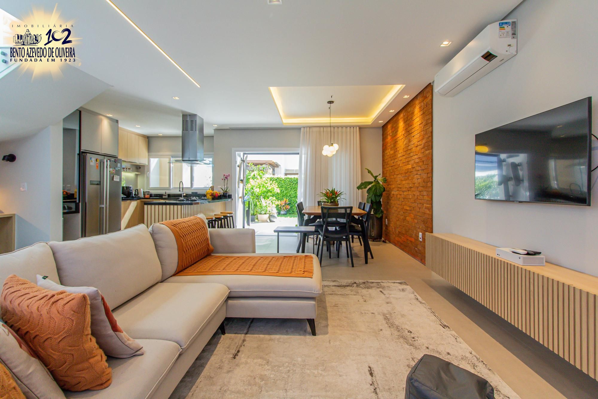 São 160m², com 3 dormitórios (incluindo 1 suíte master com closet), living para 2 ambientes com lareira aconchegante, escritório, cozinha integrada, pergolado com churrasqueira e pátio com gramado, frutíferas e espaço para piscina.