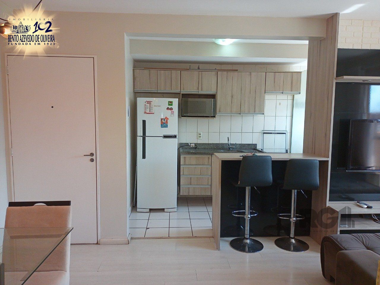 Excelente apartamento de 03 dormitórios, sendo uma suíte, muito bem localizado no bairro Camaquã, living com 2 ambientes com sacada, cozinha tipo americana com área de serviço integrada, banheiro social, com vaga escriturada. Ficam no imóvel todos os móveis planejados da cozinha, quartos, banheiro, painel e espelho da sala.