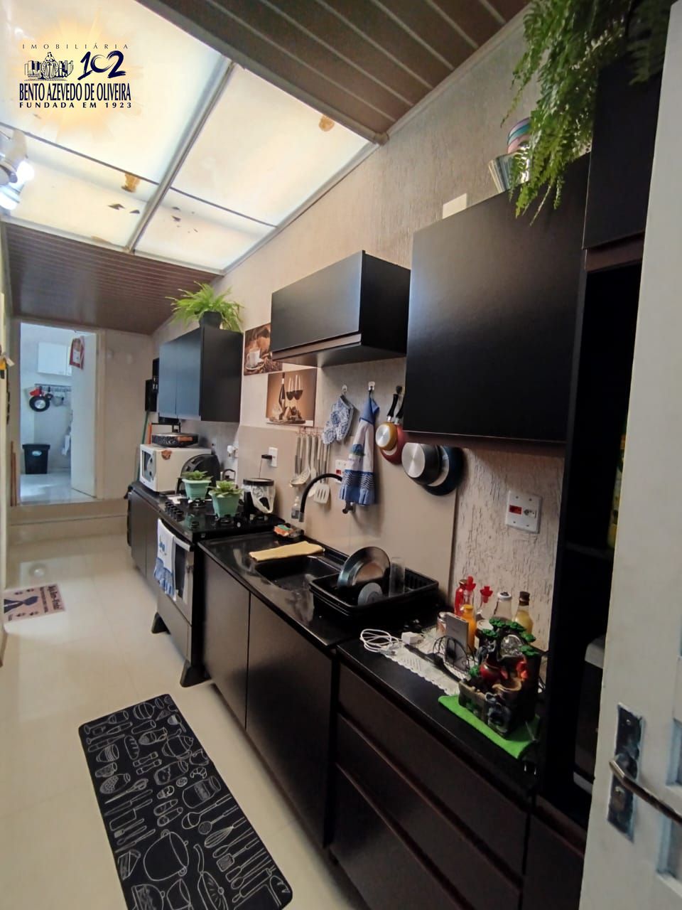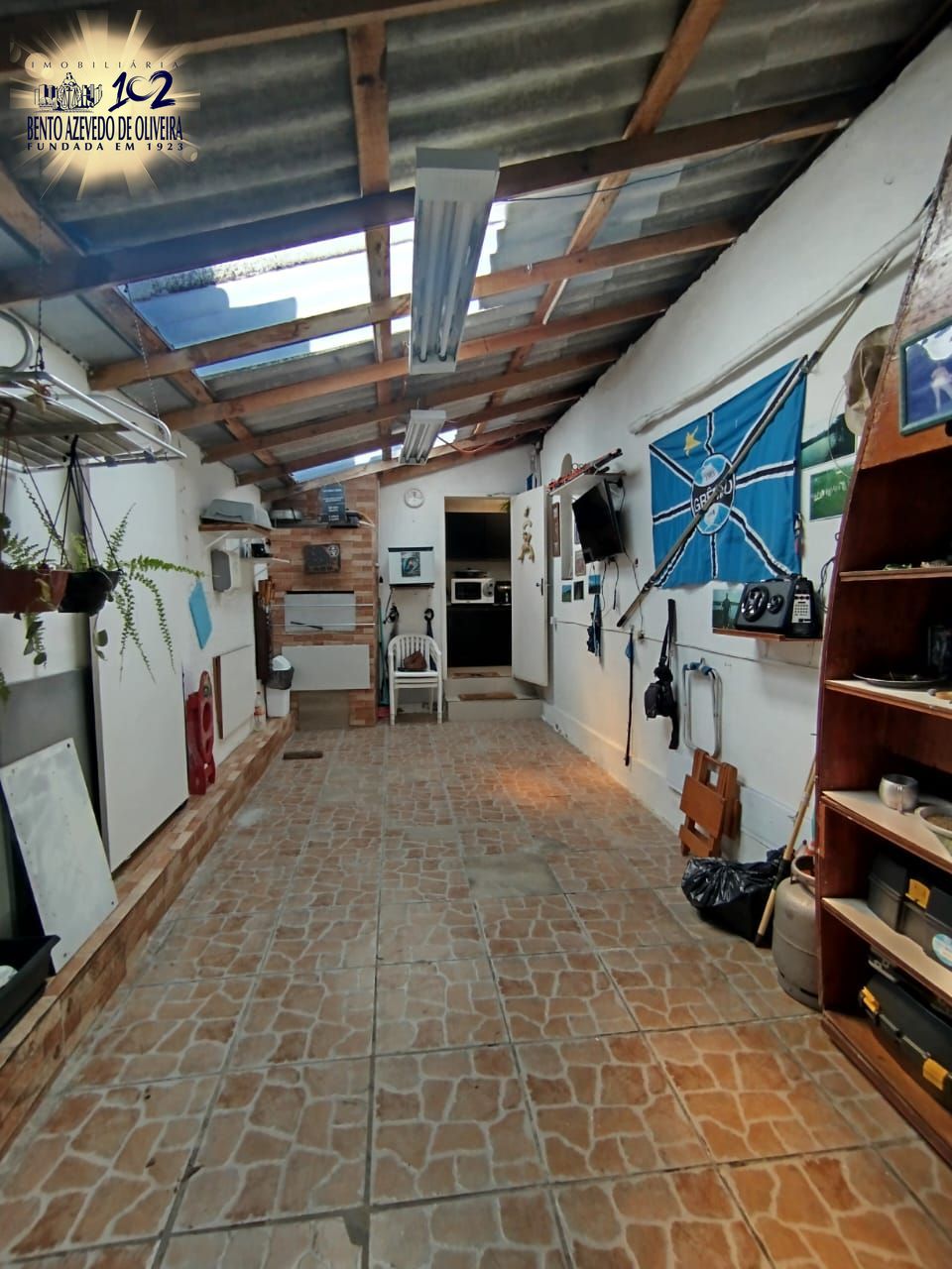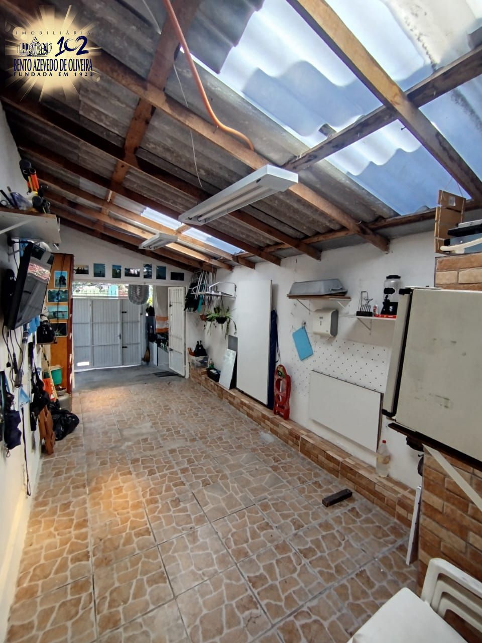 Garagem coberta para 2 carros e churrasqueira.