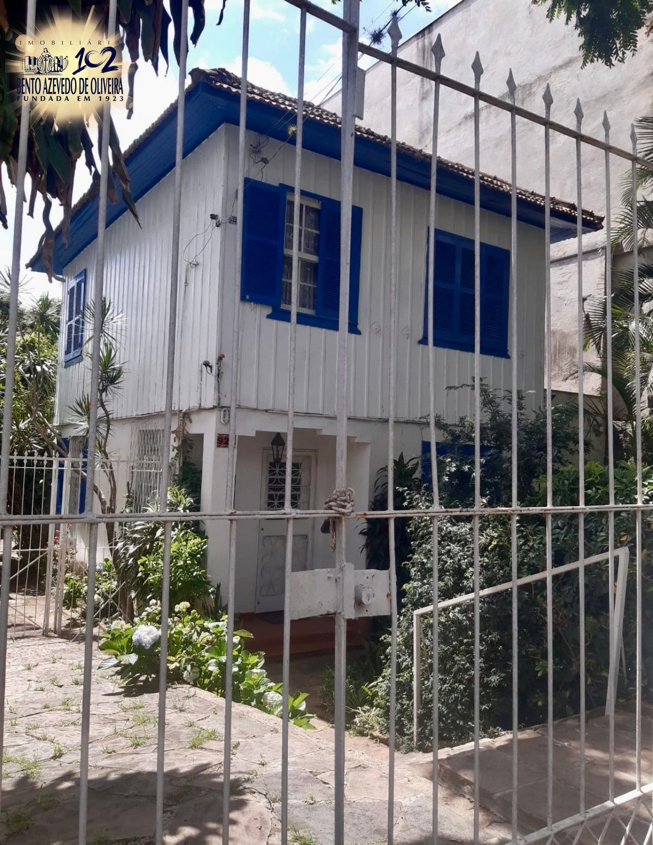 Pátio gigante, espaço de lazer. Casa com edícula nos fundos, com grades nas portas e janelas.