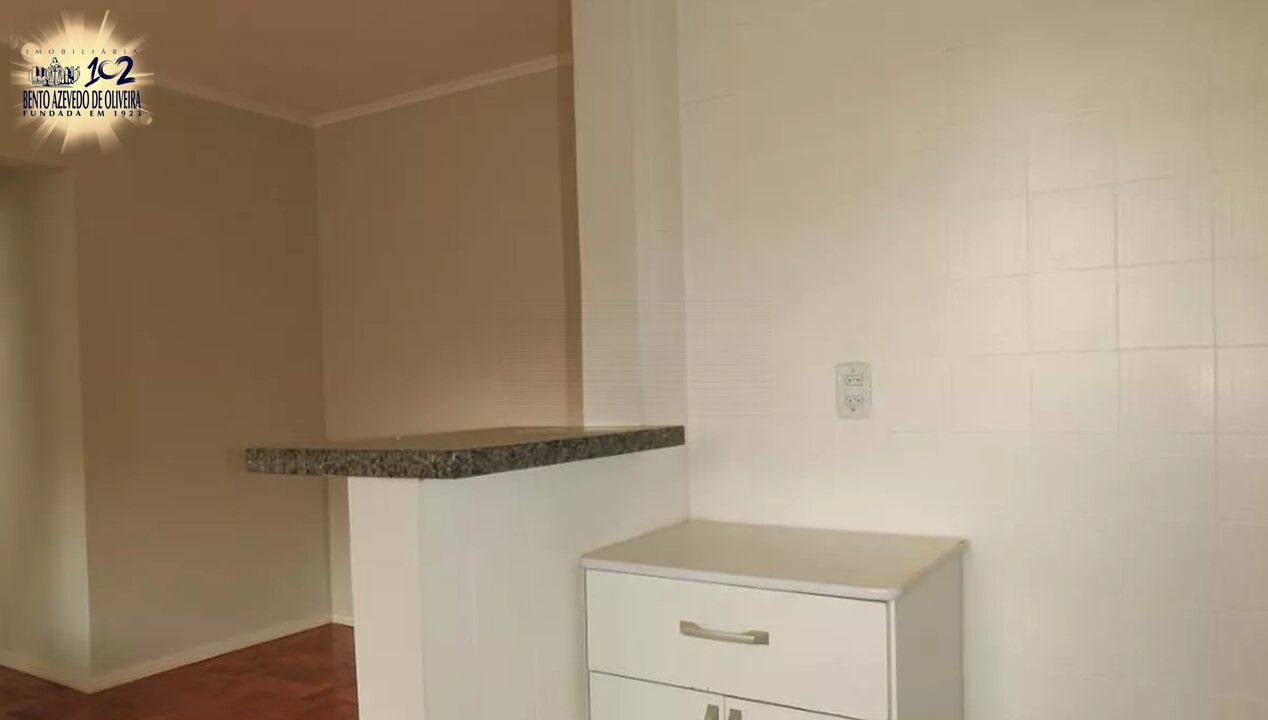 Apartamento de 1 dormitório, com 43m³ de área privativa, cozinha com área de serviço separada e 1 banheiro.