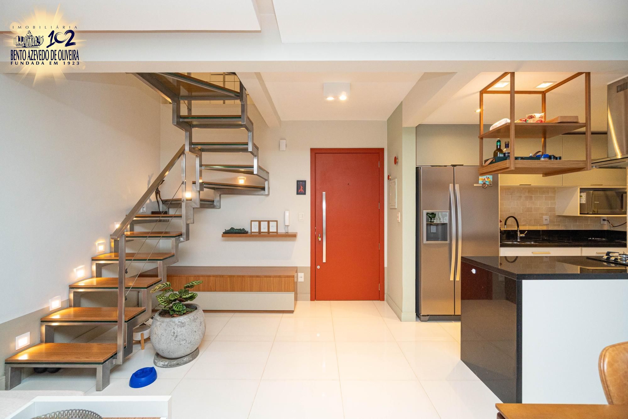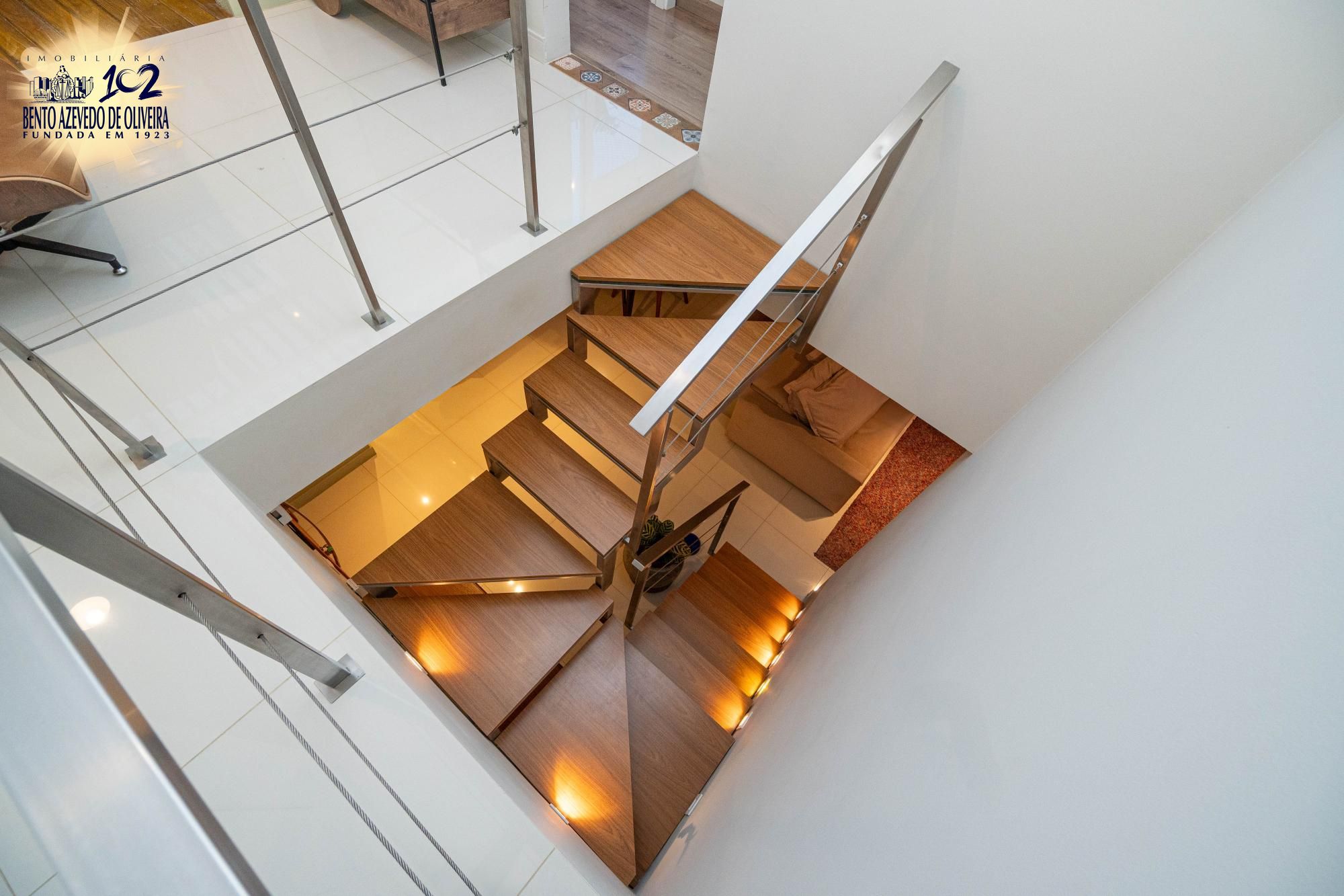 O primeiro pavimento oferece living amplo para 2 ambientes com cozinha americana integrada ao living planejada e área de serviço individual.