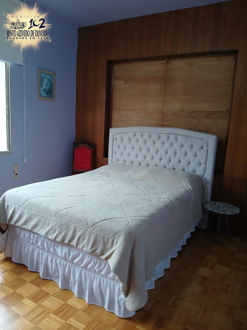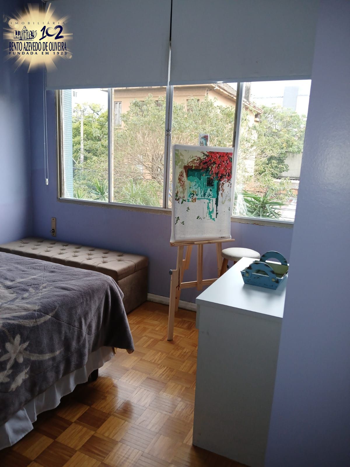 Janelas grandes, todas viradas para o sol da manhã. Piso parquet em excelente estado de conservação.