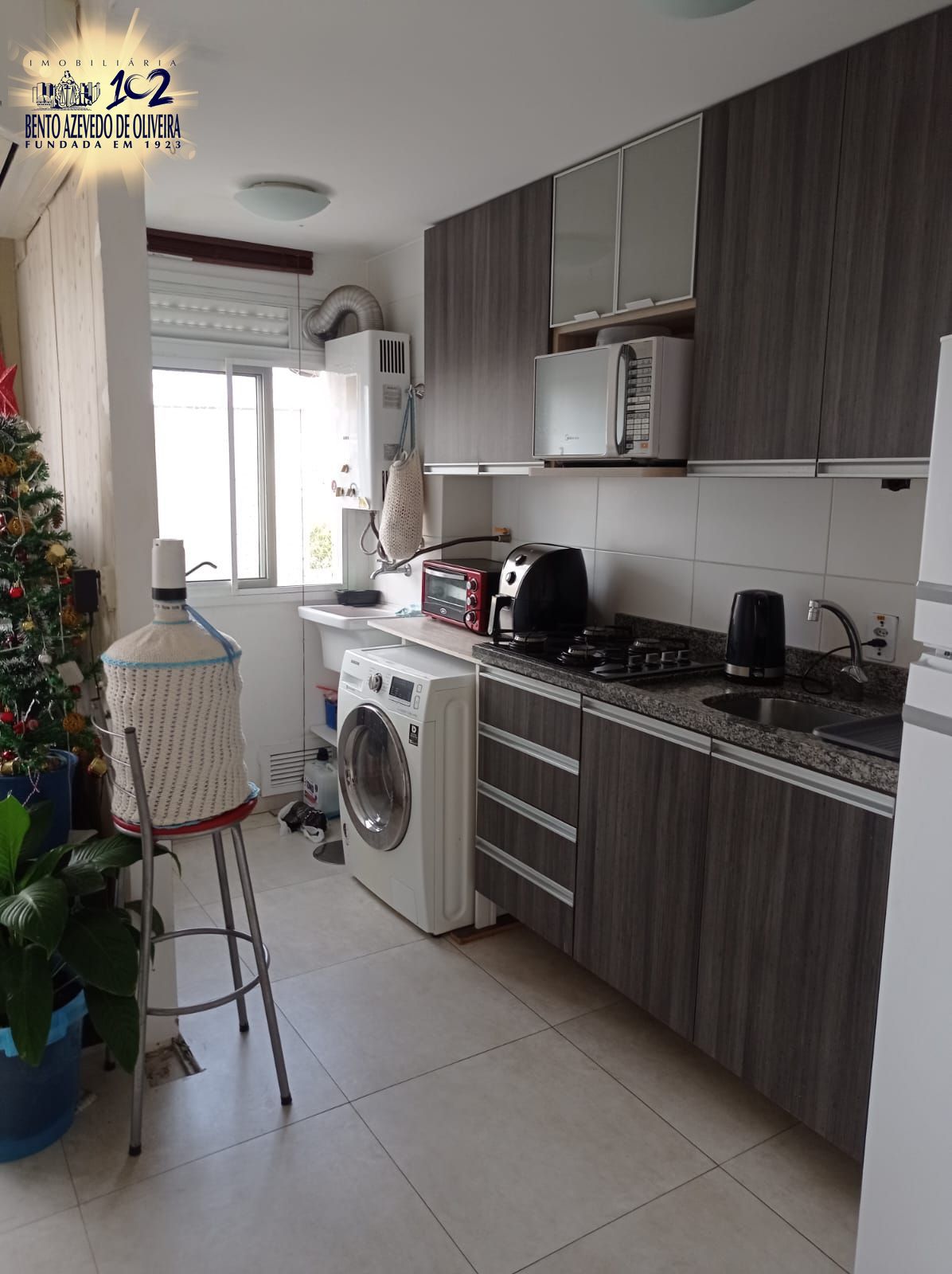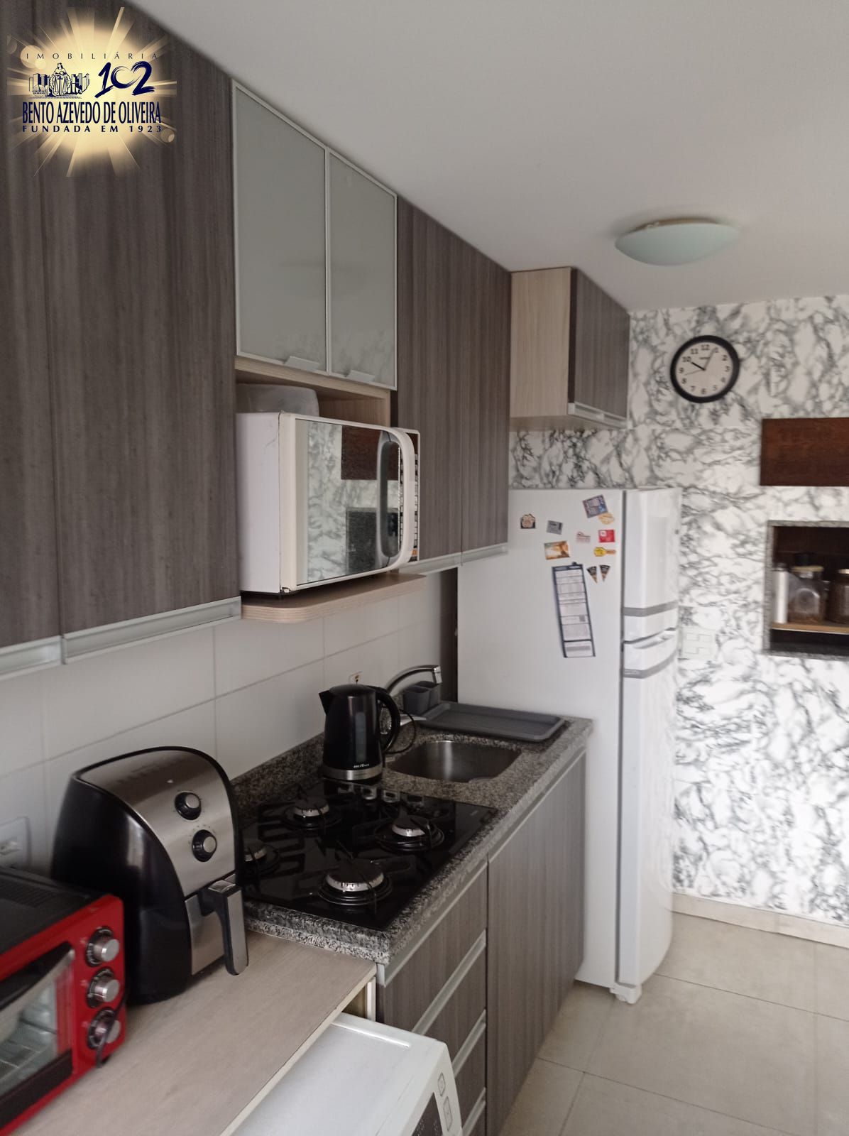 A cozinha conta com móveis sob medida, garantindo funcionalidade e organização, além de possuir churrasqueira privativa, ideal para momentos especiais.