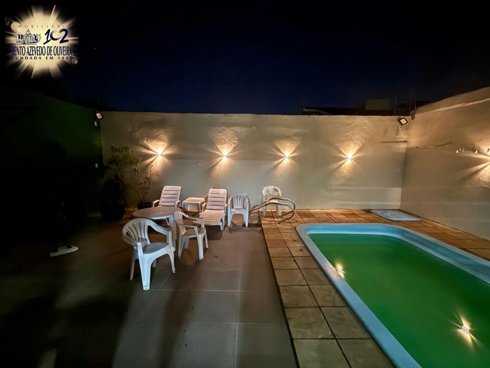 Para momentos de lazer, a casa dispõe de um espaço externo encantador, com piscina e área para descanso, um ambiente perfeito para aproveitar os dias de sol e relaxar com quem você gosta.