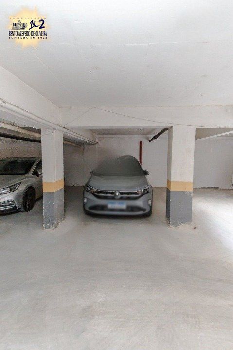 Duas vagas na garagem para até três carros.